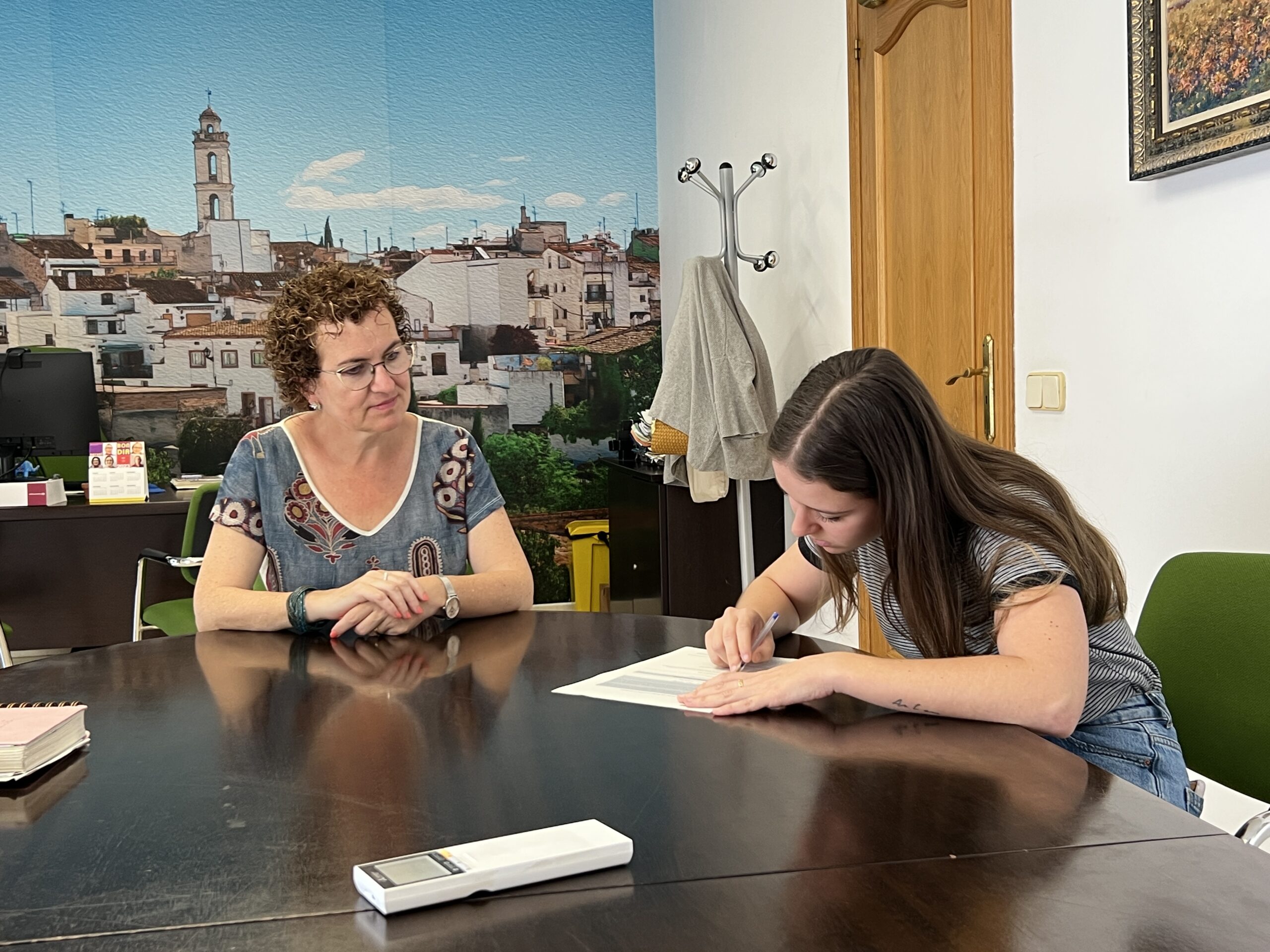 La alcaldesa Agnès Ferré ha recibido a la estudiante, a principios de esta semana, en su despacho para hacer una toma de contacto previa al inicio de las prácticas. Andrea Crespo ha explicado que le hace ilusión hacer prácticas en el Ayuntamiento porque “podré aportar cosas buenas a mi pueblo para que evolucione, puedo aplicar mis aprendizajes y, además, no me tengo que trasladar y podré disfrutar de los amigos en verano”. Andrea ha añadido que “vengo un poco a ciegas porque no he trabajado nunca en este sector, pero me han dicho que aquí en el Ayuntamiento haré tareas diversas relacionadas con mi ámbito de estudio, y esto también me irá bien para ver qué me gusta más y qué me gusta menos de lo que he estudiado a la hora de llevarlo a la práctica”.