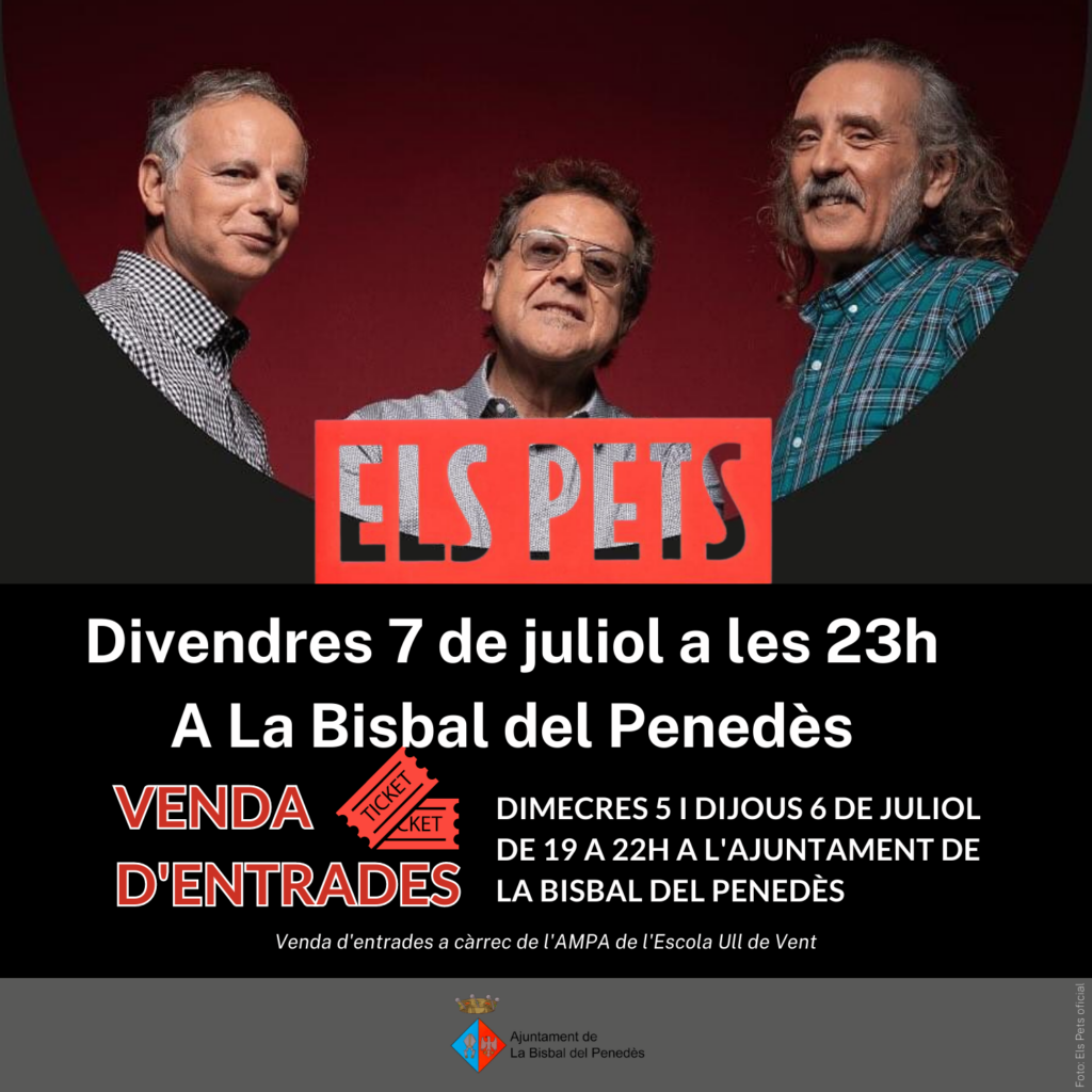 Venda d’entrades per al concert de Els Pets del divendres 7 de juliol a les 23h