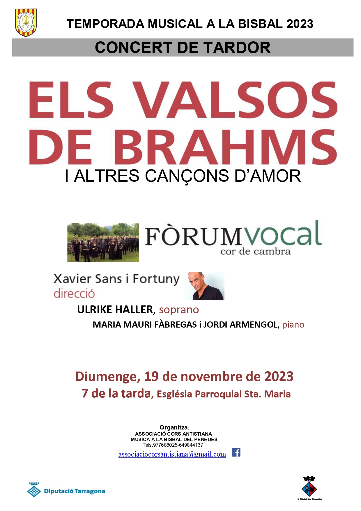 L’Associació de Cors Antistiana ha organitzat un concert per al diumenge 19 de novembre, a les 19h, a l’església parroquial de Santa Maria.