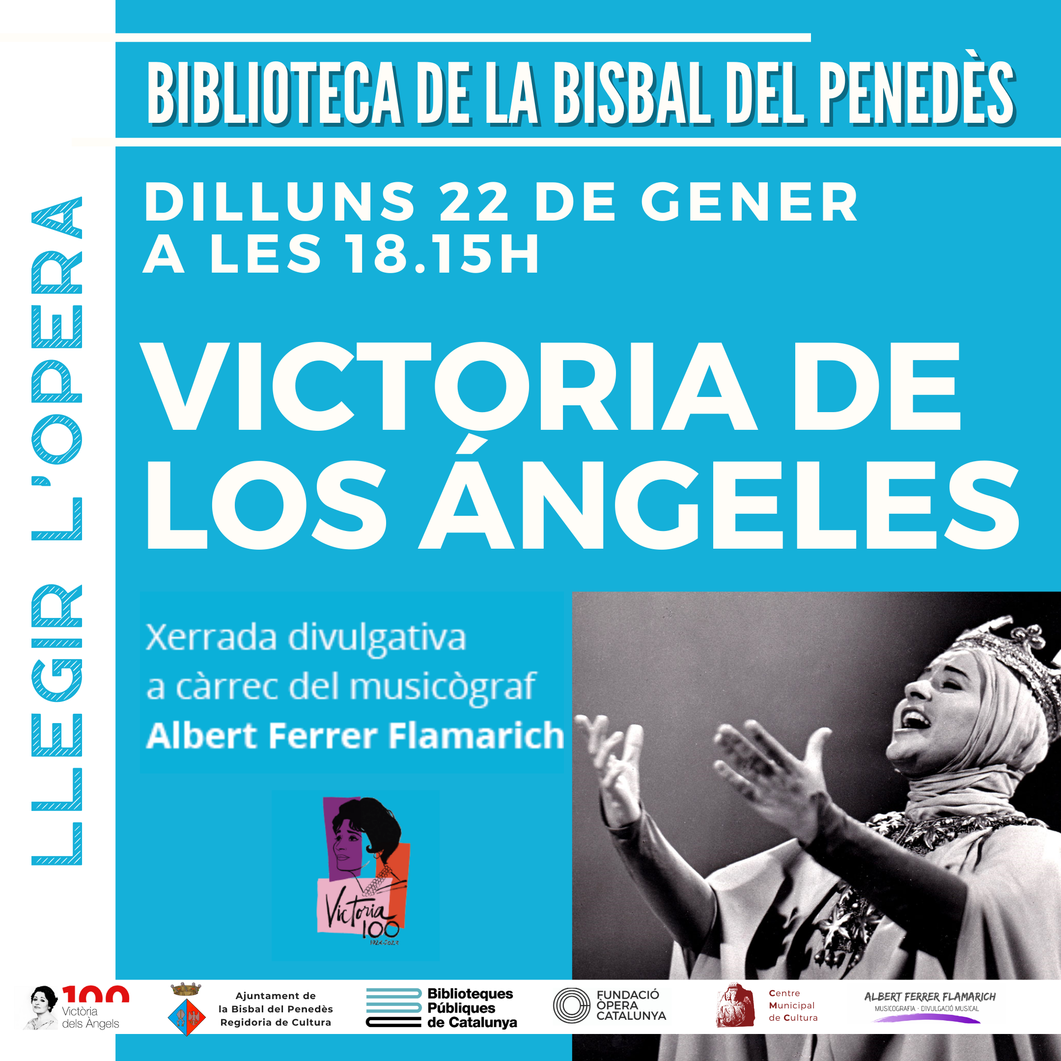 El dilluns 22 de gener, a les 18:15h, se celebrarà la primera sessió d’aquest 2024 del cicle Llegir l’Òpera de la Biblioteca pública de la Bisbal del Penedès. En ocasió del centenari del naixement de la il·lustre soprano catalana “Victòria de los Ángeles”, el musicòleg Albert Ferrer Flamarich ens farà una aproximació a la vida i art de la gran dama de lied del segle XX.