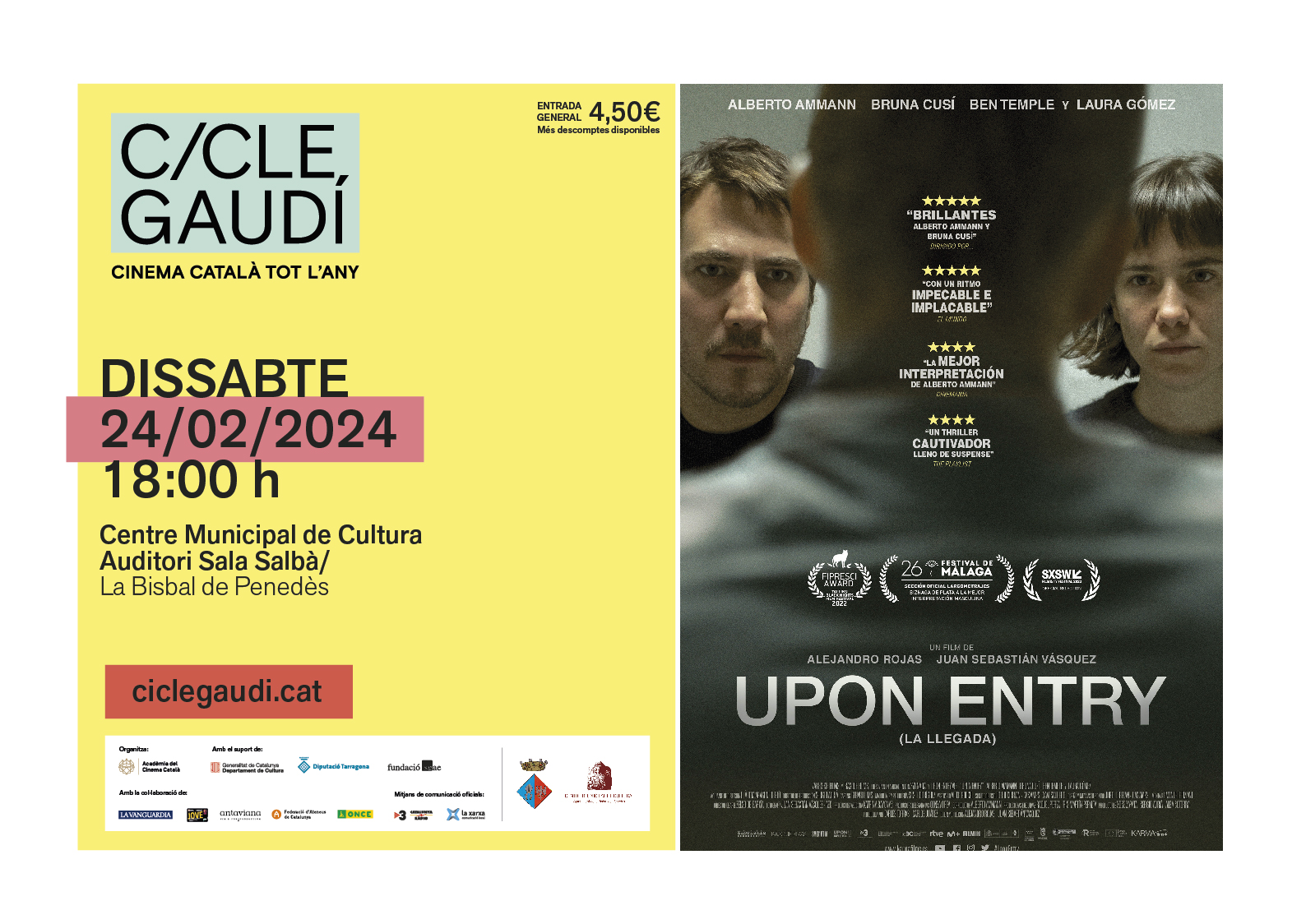 Como es habitual, el precio de la entrada será de 4,5€ (general) y 3€ para los espectadores que presenten el carné de la Biblioteca pública de la Bisbal del Penedès. Los beneficios se destinarán a la entidad que gestione la taquilla antes de la proyección, en este caso la Associació de Dones La Roca Fordada.