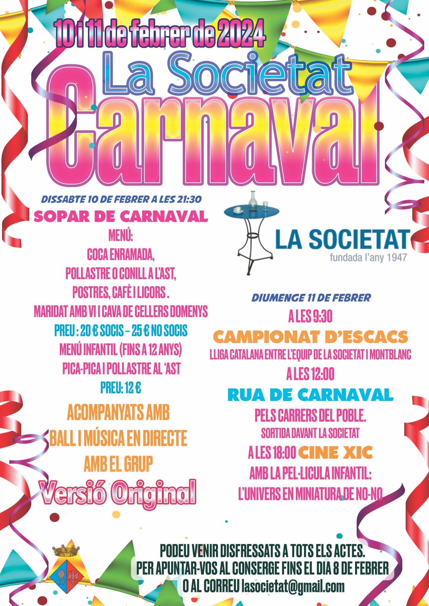 Un any més, arriba el Carnaval a la Societat amb la rua i el sopar amb ball i, enguany, amb més activitats