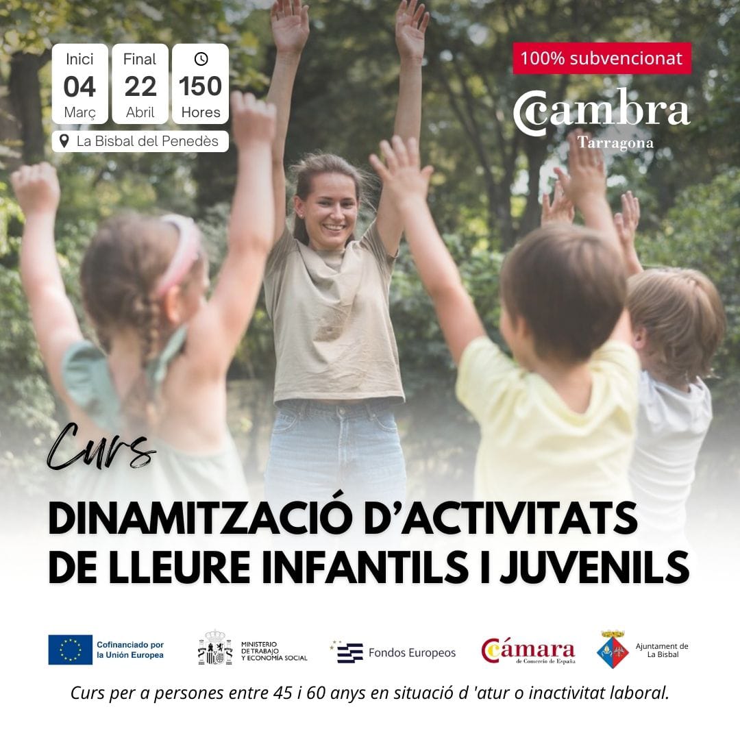 CASTELLANO |  El 4 de marzo empieza una nueva formación en dinamización de actividades de ocio infantiles y juveniles en la Bisbal del Penedès. Está dirigido a personas de entre 45 y 60 años que estén en paro o en situación de inactividad laboral. La formación es 100% subvencionada, presencial y de mañanas (de 9 a 14h).