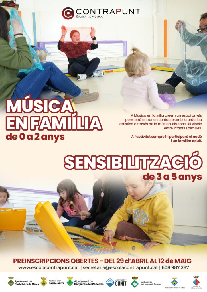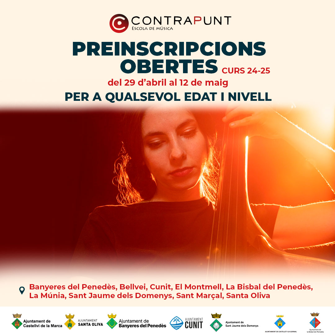 ¿Os gustaría aprender música? ¿Queréis que los pequeños de casa aprendan música? Los pequeños de casa quieren tocar un instrumento o aprender a cantar? Hasta el 12 de mayo podéis hacer vuestra preinscripción para la escuela municipal de música dirigiéndoos a la Escola Contrapunt.