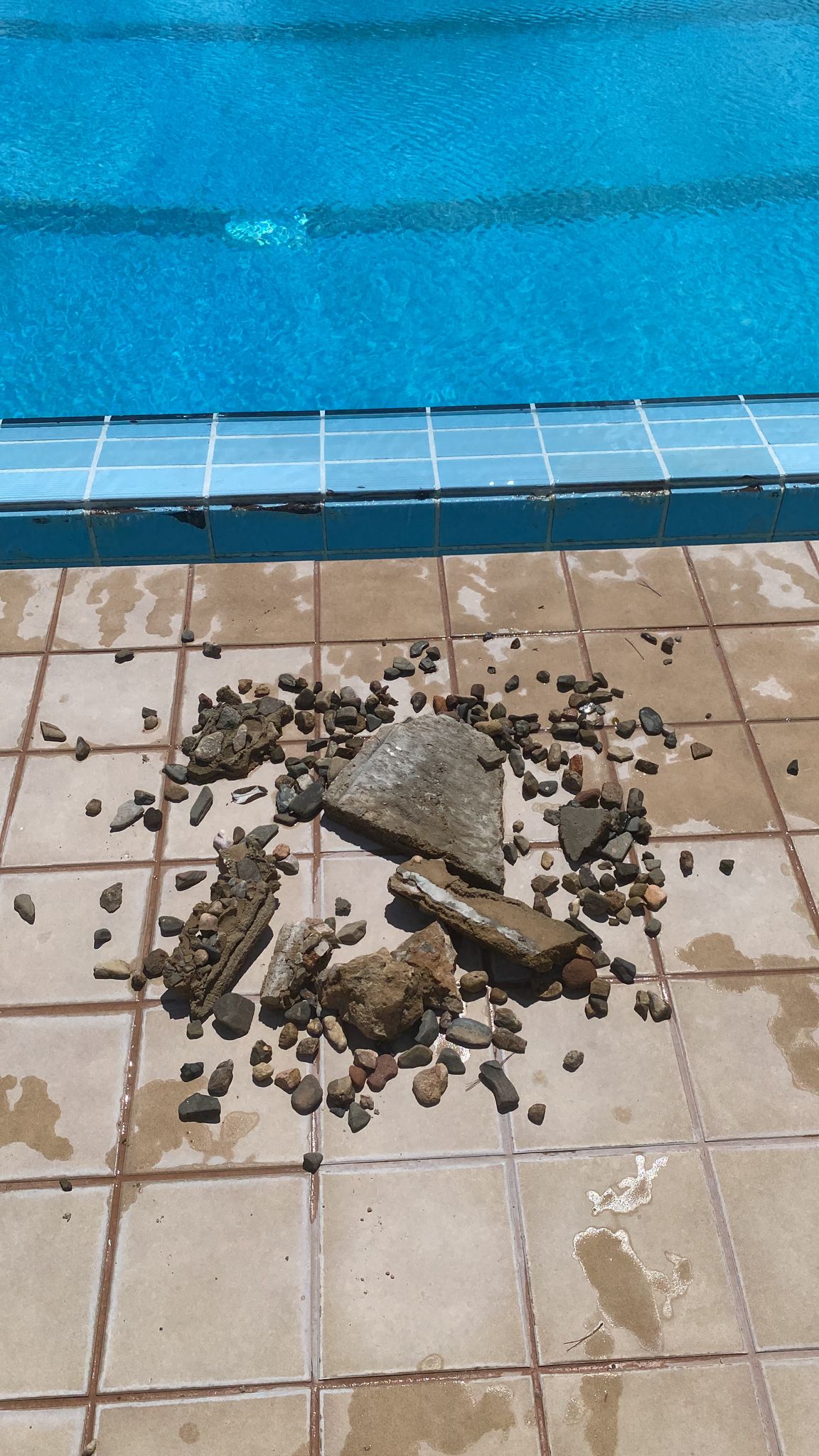 CASTELLANO | Una vez más tenemos que lamentar el comportamiento incívico de unos cuantos que terminamos pagando entre todos. Hemos retirado piedras de varias medidas del fondo de la piscina municipal. También hemos encontrado otras cosas, como por ejemplo ropa interior masculina. Las piedras grandes podrían haber causado daños en el interior de la piscina y se están valorando.