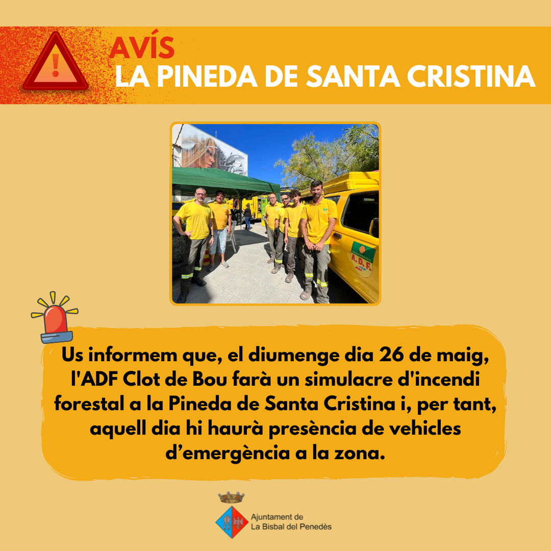 El diumenge 26 de maig es farà un simulacre d’incendi forestal a la Pineda de Santa Cristina.