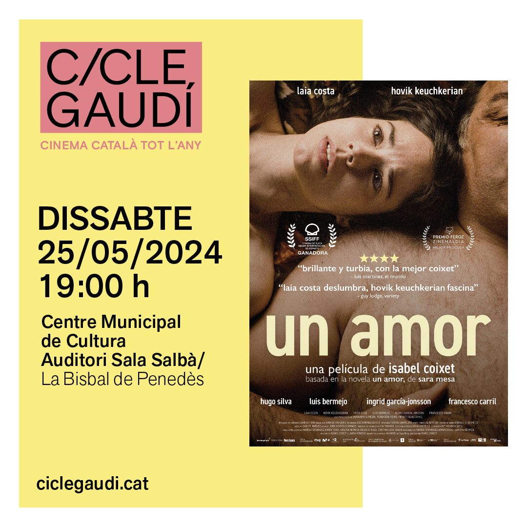 El dissabte 25 de maig, a les 19h, l’Auditori Salbà del CMC acollirà la projecció del film “Un amor” del Cicle Gaudí, dirigida per Isabel Coixet i basada en la novel·la amb el mateix nom de Sara Mesa.