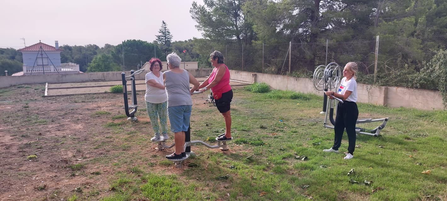 Parques de salud: actividad física y deportiva. Actividades tres mañanas a la semana en el parque de salud del núcleo, dos tardes en el parque de salud de La Miralba, dos tardes en el parque de salud del Priorat y dos mañanas en el parque de salud de Can Gordei.