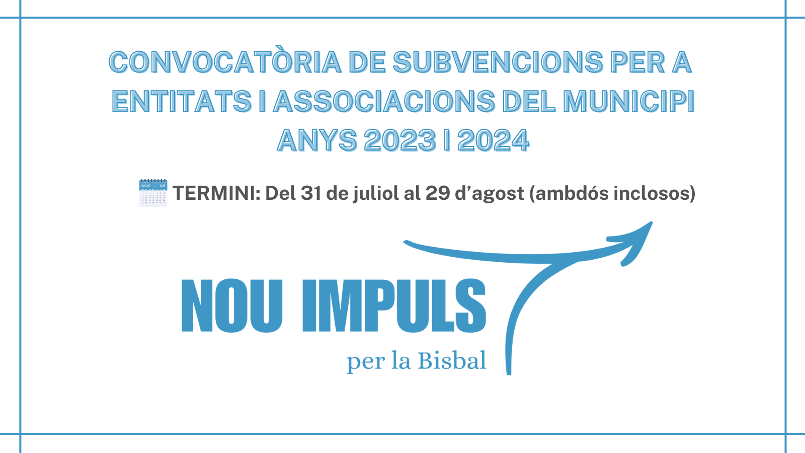*TERMINI ALLARGAT FINS AL 20 DE SETEMBRE: https://bisbalpenedes.com/web/2024/08/26/ampliacio-del-termini-per-a-la-presentacio-de-sollicituds-per-a-les-subvencions-en-materia-de-cultura-fins-al-20-de-setembre/