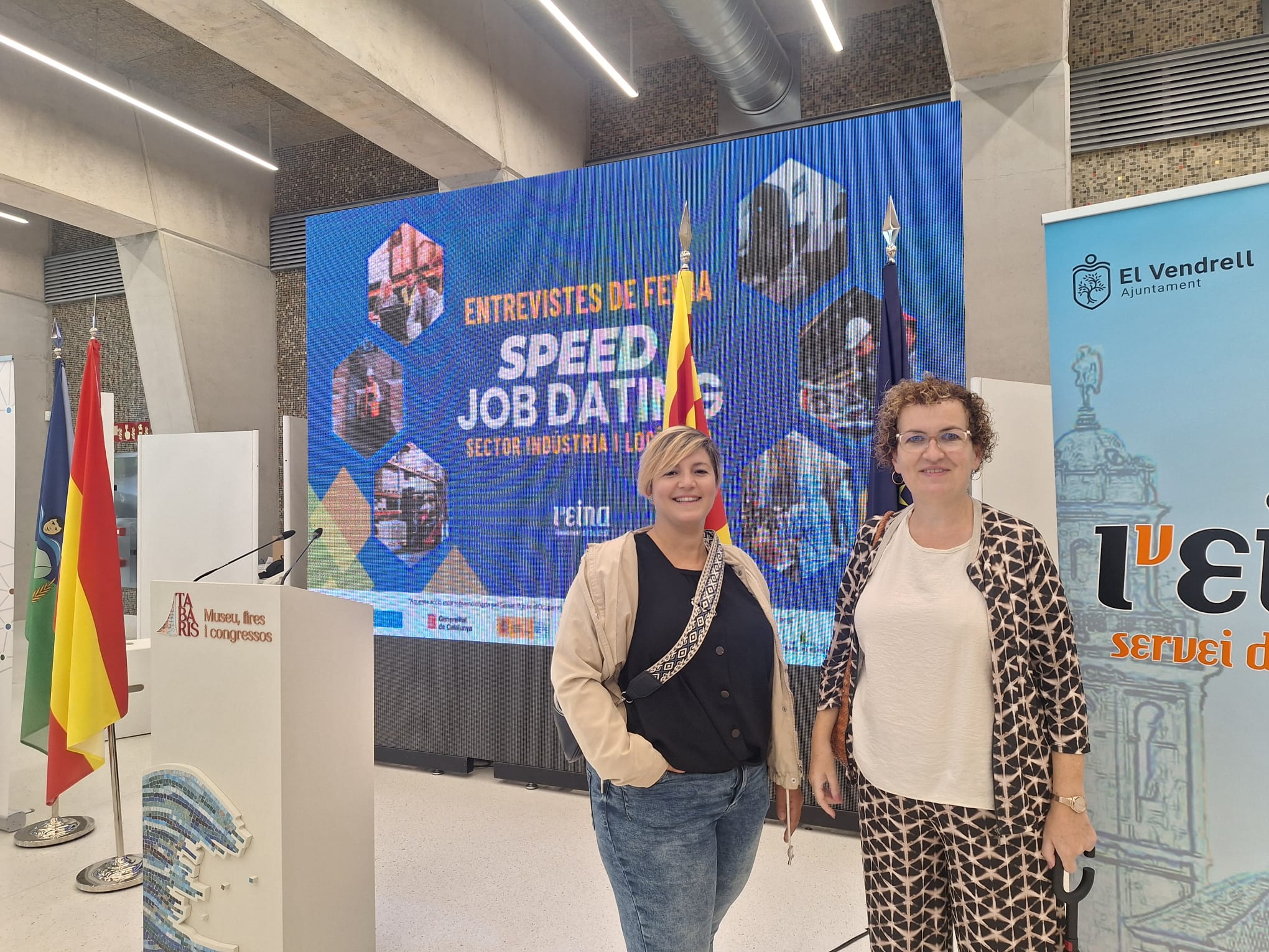 Este miércoles 18 de septiembre el Tabaris de Coma-Ruga ha sido el escenario de una jornada de entrevistas rápidas “Speed Job Dating” con 22 empresas del sector industrial y logístico. Esta es una actividad que se lleva a cabo en el marco de “Trabajo en Comarcas”, una iniciativa comarcal de la que forma parte el Ajuntament de La Bisbal del Penedès. La alcaldesa y responsable del área de Ocupación, Agnès Ferré; y la técnica de Ocupación, Arantzazu Longares, han asistido a este evento.