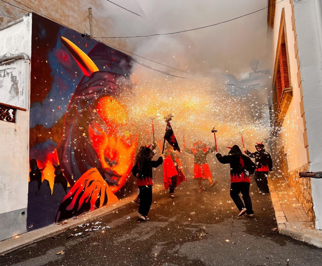 El último día del festival, el domingo, se celebró una pequeña fiesta frente a los murales, que incluyó un pasacalles con la participación de las entidades representadas. Este acto permitió a los visitantes y residentes apreciar de cerca las nuevas obras de arte urbano. Además, los artistas tuvieron la oportunidad de experimentar de primera mano algunos de estos elementos de la cultura popular local, poniéndose en la piel de un diablo en un correfoc o haciendo bailar a un gigante.