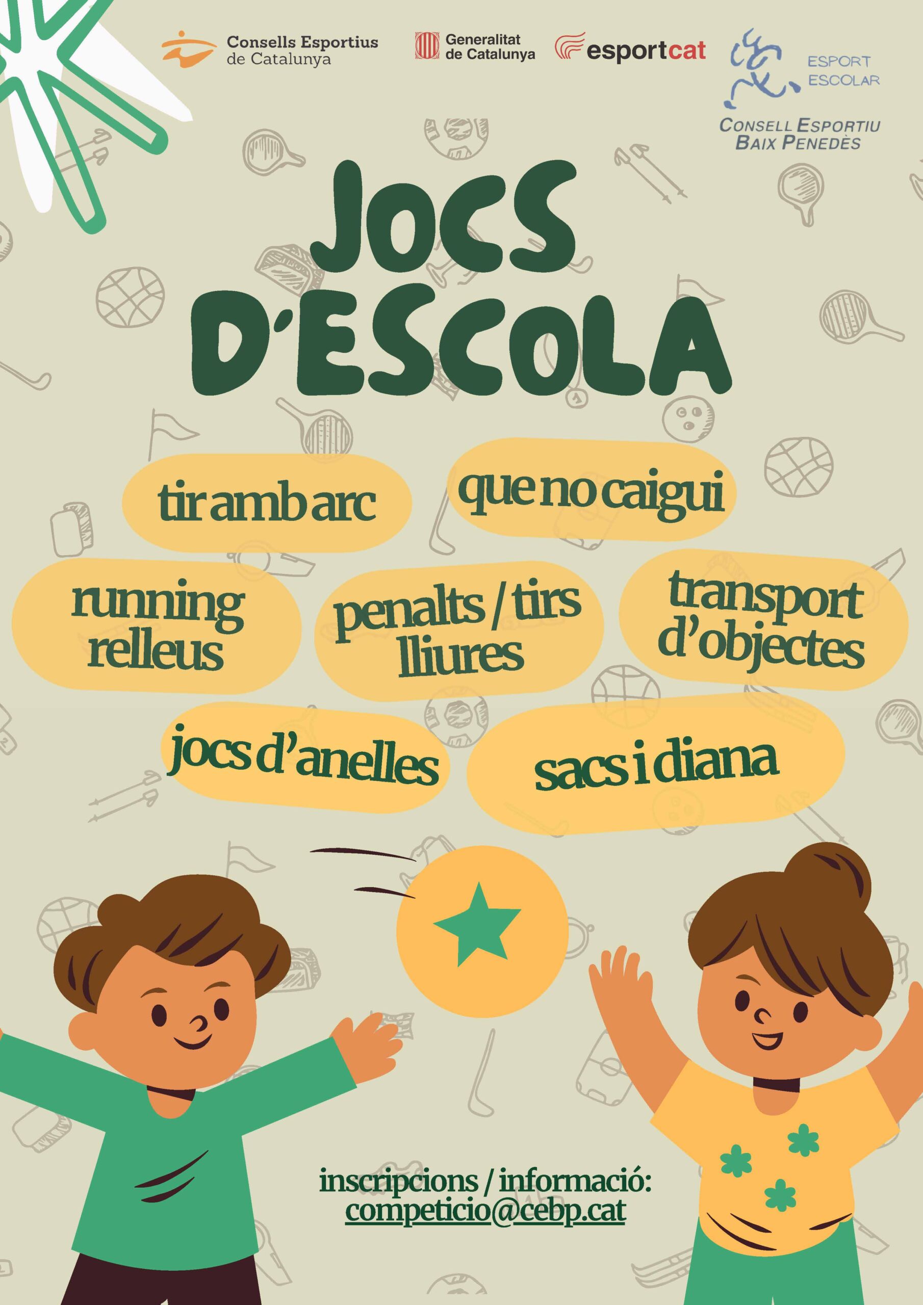 Fins al 13 de gener estan obertes les inscripcions per als Reptes Esportius, una activitat que forma part dels Jocs d’Escola dels Jocs Esportius Escolars de Catalunya i que va dirigida a les categories de prebenjamí, benjamí i aleví (cursos de 1r a 6è de primària). L’activitat consistirà en fer una trobada competitiva mensual -per equips- d’entre 4 i 6 esportistes en representació del seu centre educatiu- en dissabte entre els mesos de gener i abril al pavelló del Club Tennis Vendrell.