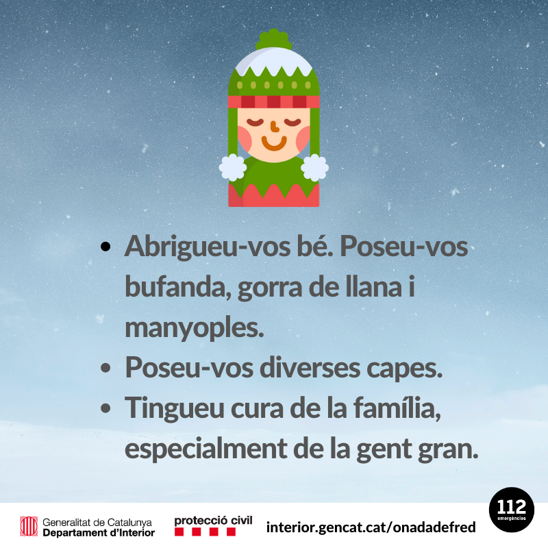 Avís per fred per al dimarts 14 i el dimecres 15 de gener