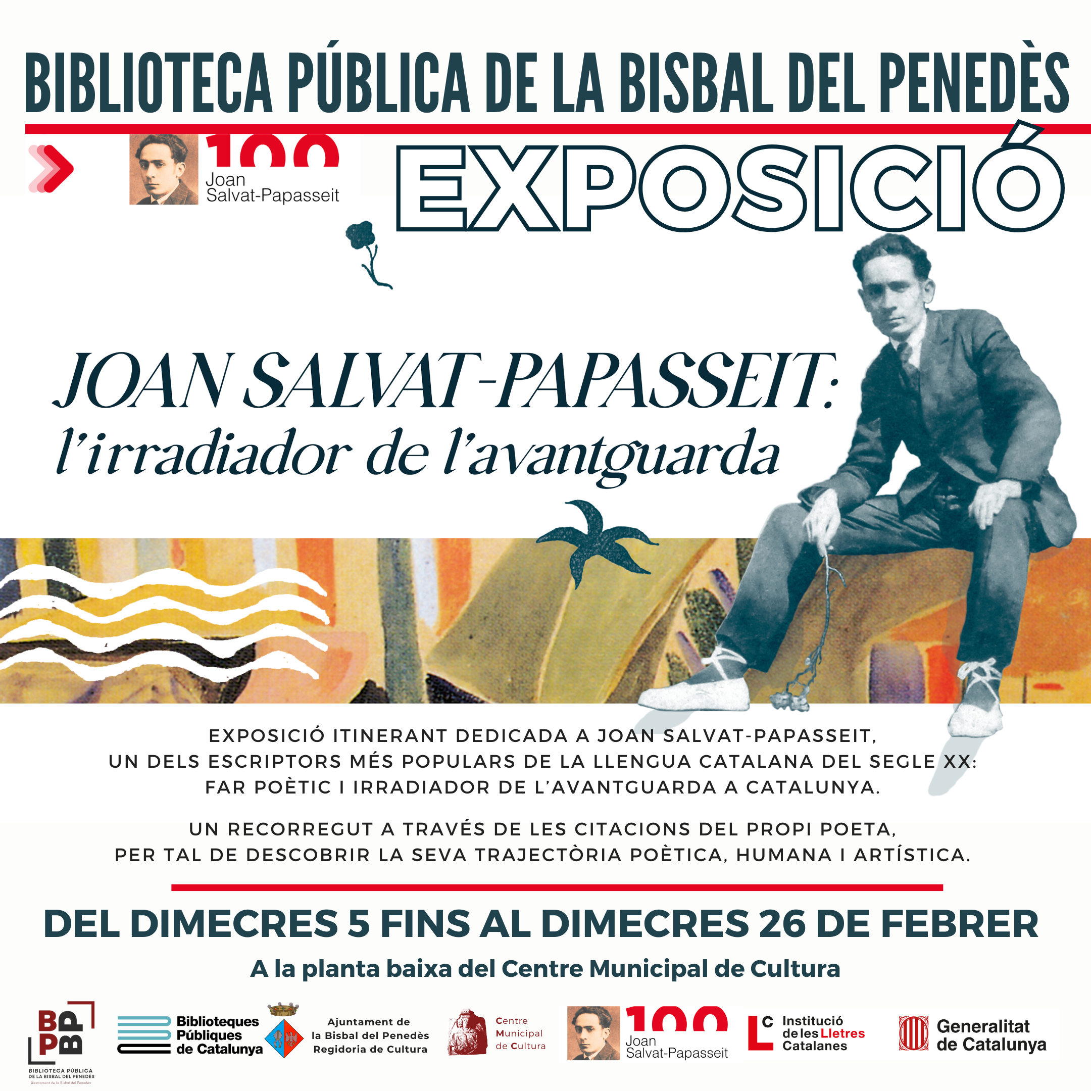 Del 5 al 26 de febrer, el Centre Municipal de Cultura, situat a la plaça Major 11-15, acollirà l’exposició itinerant “Joan Salvat-Papasseit: l’irradiador de l’avantguarda”.