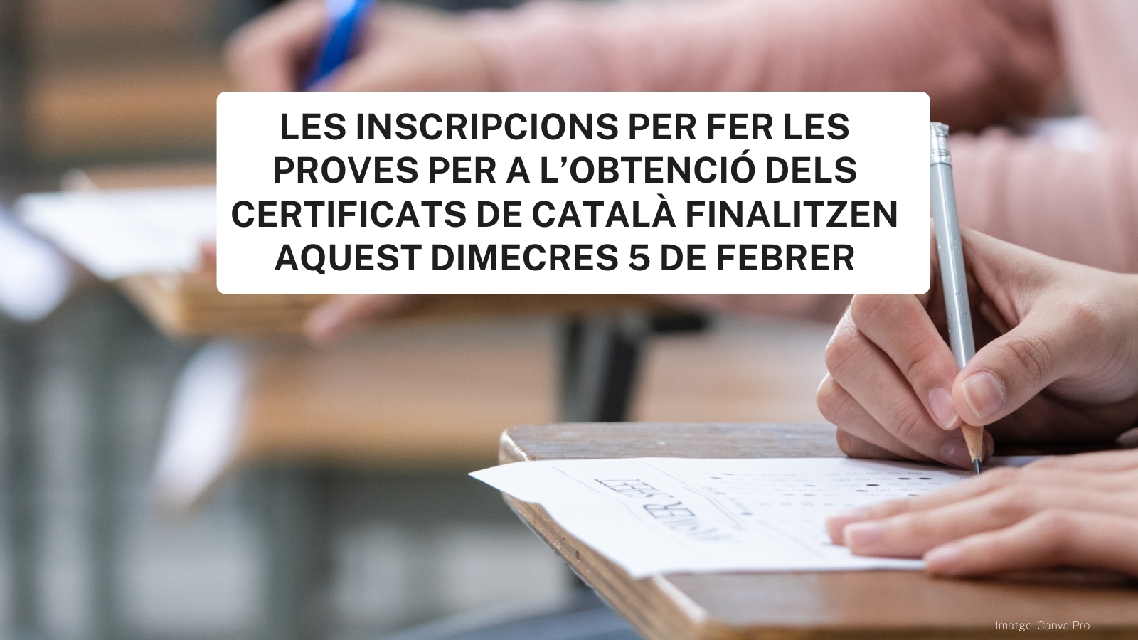 Os informamos de que el plazo de inscripción para realizar las pruebas para obtener los certificados oficiales de catalán finaliza este miércoles 5 de febrero.