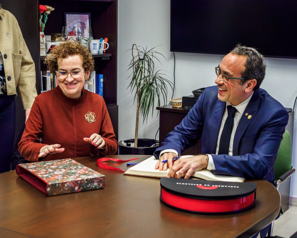 En cuanto a la Colla Castellera La Bisbal del Penedès, el presidente del Parlament ha trazado un paralelismo entre la sardana y los castells: “los catalanes somos especiales en esto: con la sardana, que iguala a todos, donde baila todo el mundo, independientemente de su edad y condición social; y con los castellers, donde estamos todos: hombres, mujeres… ¡Qué importante fue incorporar a las mujeres en los troncos de los castells! Sin las mujeres hubiera sido imposible hacer castells de 9 y de 10. Y gente que representa cómo es el país: personas de realidades socioeconómicas distintas y de procedencias diferentes. Gente que ha nacido en Cataluña y gente que ha nacido fuera de Cataluña y ha querido que esta fuera su tierra y la tierra de sus hijos. Y eso tiene una potencia simbólica extraordinaria”. Además, ha destacado que “nosotros somos el país de los castells, de esta obra colectiva, de esta obra común en la que todos son relevantes, todos son importantes. Lo importante es la obra colectiva. Y esto es lo que hoy el país necesita: mirarnos al espejo, volver a gustarnos, recuperar esta visión colectiva y entender que, si nos lo proponemos, podemos alcanzar las metas más ambiciosas. Debe haber generosidad, trabajo en equipo y respeto”.