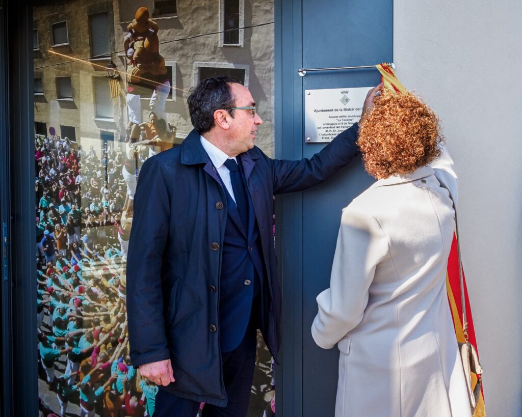 El M.H. president del Parlament de Catalunya, el Josep Rull, ha inaugurat ‘La Fassina’ de Bisbal del Penedès avui dissabte 8 de febrer. Aquest nou equipament està dividit en dues parts: d’una banda acollirà el local social -i d’assaig- de la Colla Castellera La Bisbal del Penedès (Bous) i de l’altra albergarà l’ADF Clot de Bou i els seus vehicles. Les obres han suposat una inversió total d’1.039.069,11€ (IVA inclòs).