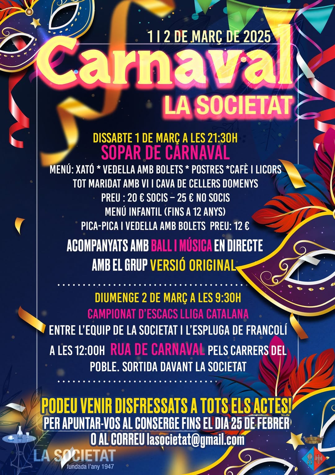 Carnaval a la Societat: sopar, escacs i rua