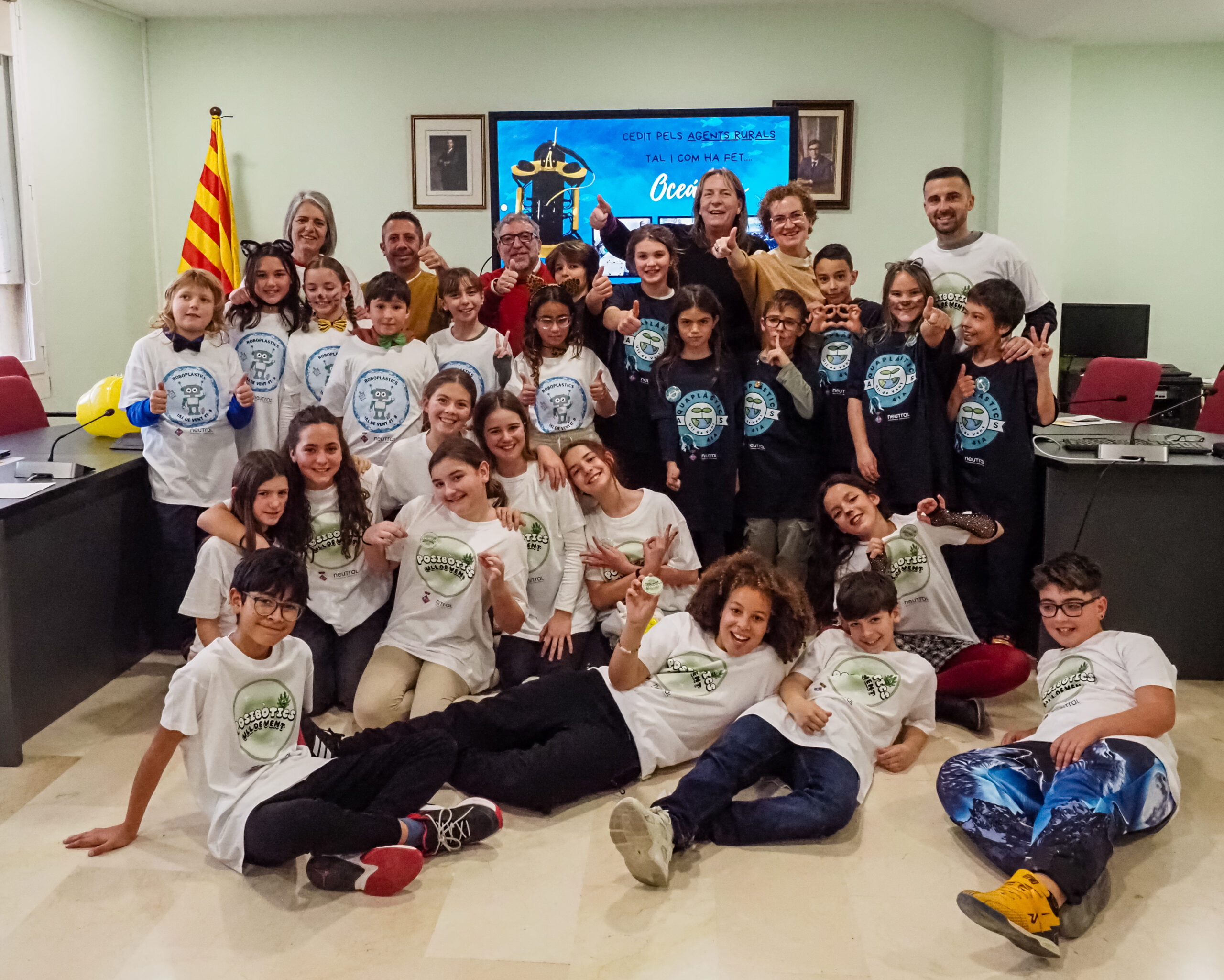 Aquaplàstics (4º A). Este equipo está formado por los siguientes alumnos: Asur, Leo, Ari, Berta, Neizan, Ángela y Alan. Su proyecto tiene el objetivo de limpiar el fondo marino de plásticos y microplásticos.
