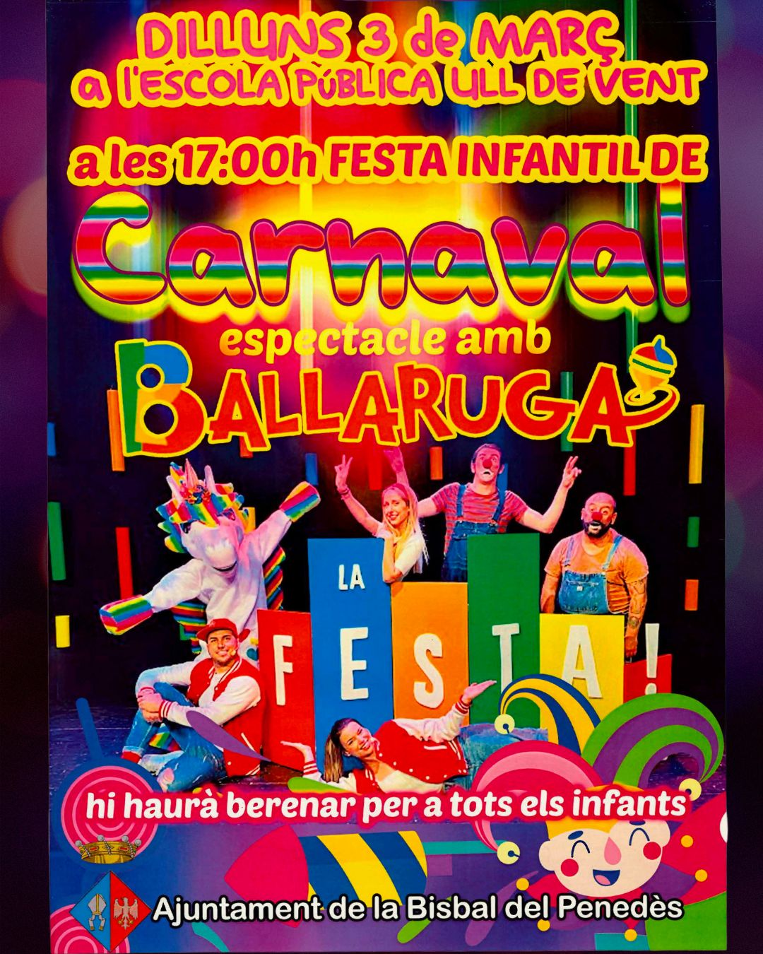 Este lunes por la tarde, ¡Fiesta infantil de Carnaval en la escuela Ull de Vent! ¡No os la perdáis! Habrá espectáculo y merienda para todos los niños y niñas.
