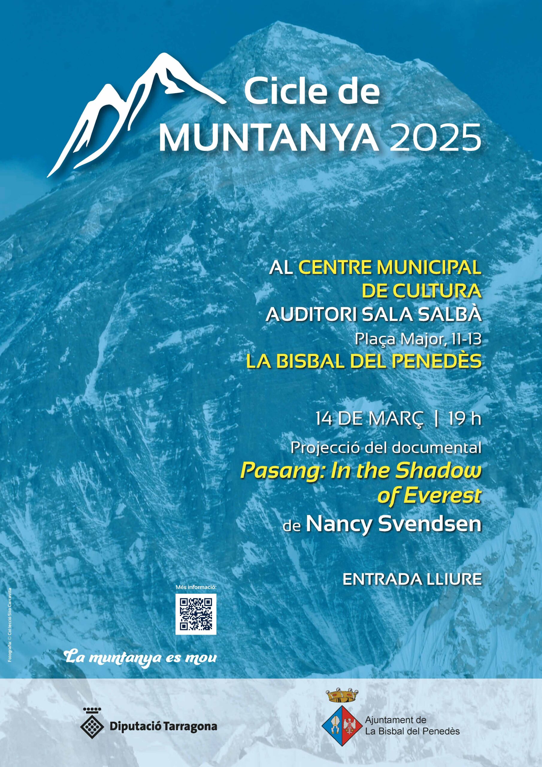 El 6 de marzo arrancó la 18ª edición del Cicle de Muntanya de la Diputació de Tarragona y, un año más, La Bisbal del Penedès se ha adherido a las proyecciones del ciclo para los amantes del alpinismo y la escalada, que este año lleva por nombre “Encanto, exploración y sueños”. En La Bisbal del Penedès podremos ver el documental Pasang: In the Shadow of Everest el 14 de marzo a las 19:00 h en el CMC, con entrada gratuita. La duración del film es de 72 minutos y se proyectará en versión original subtitulada.