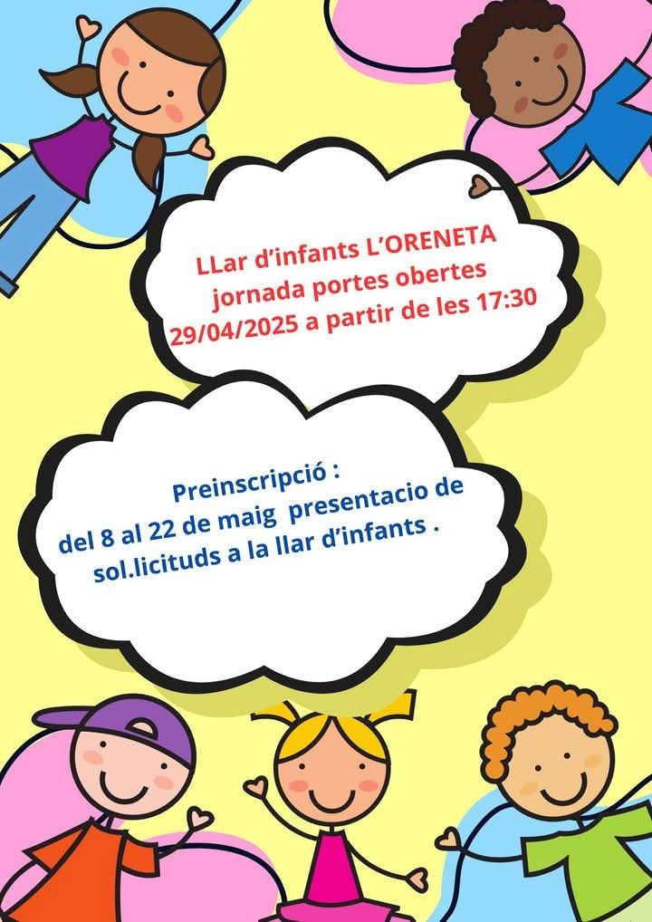 • Preinscripció: del 8 al 22 de maig, presentació de sol·licituds a la llar d’infants.