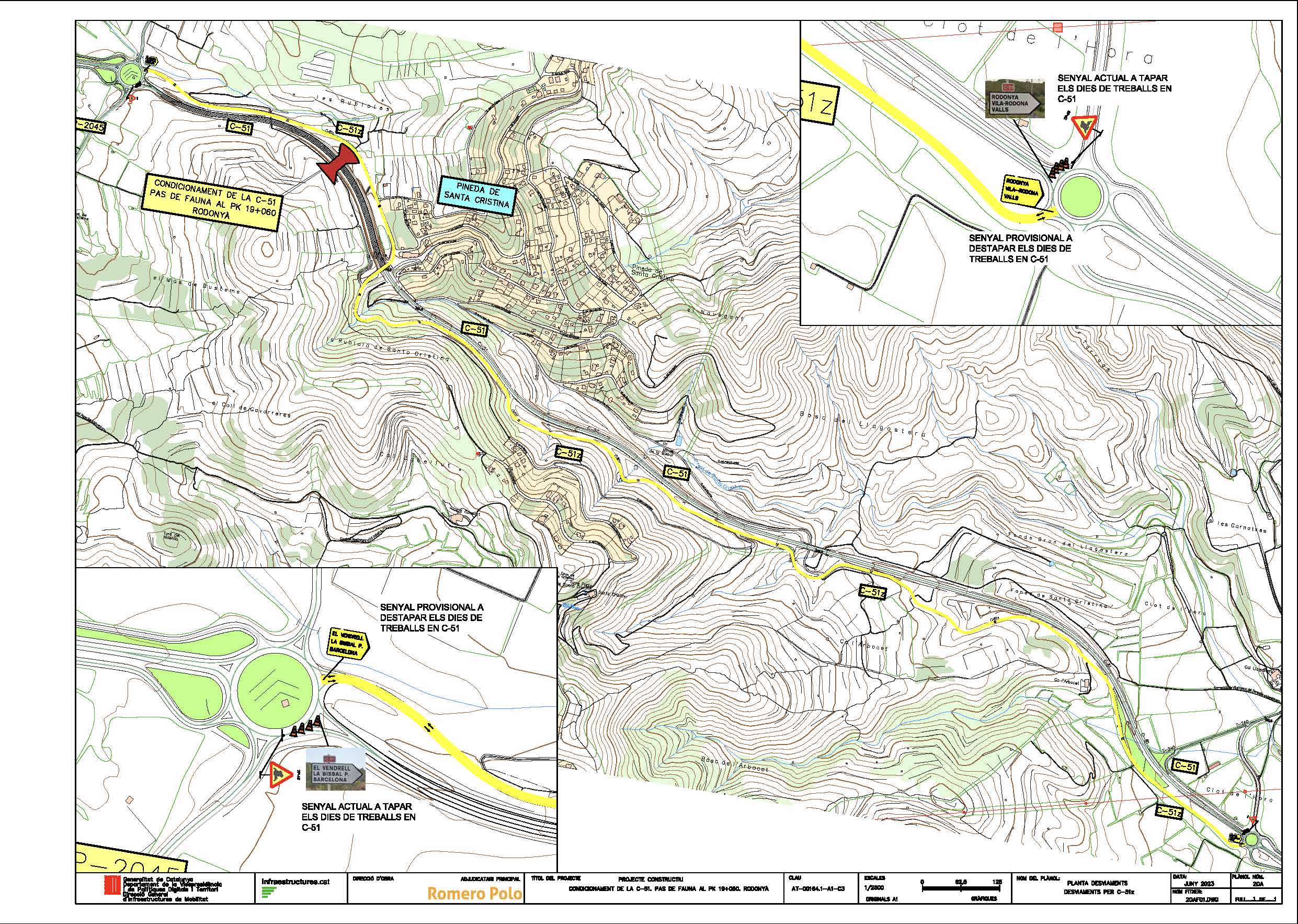 El tall serà de 24 hores al dia (també durant la nit) per realitzar el formigonat del taulell del pas de fauna de l’obra “Condicionament de la C-51. Pas de fauna al PK 19+060. Rodonyà”.
