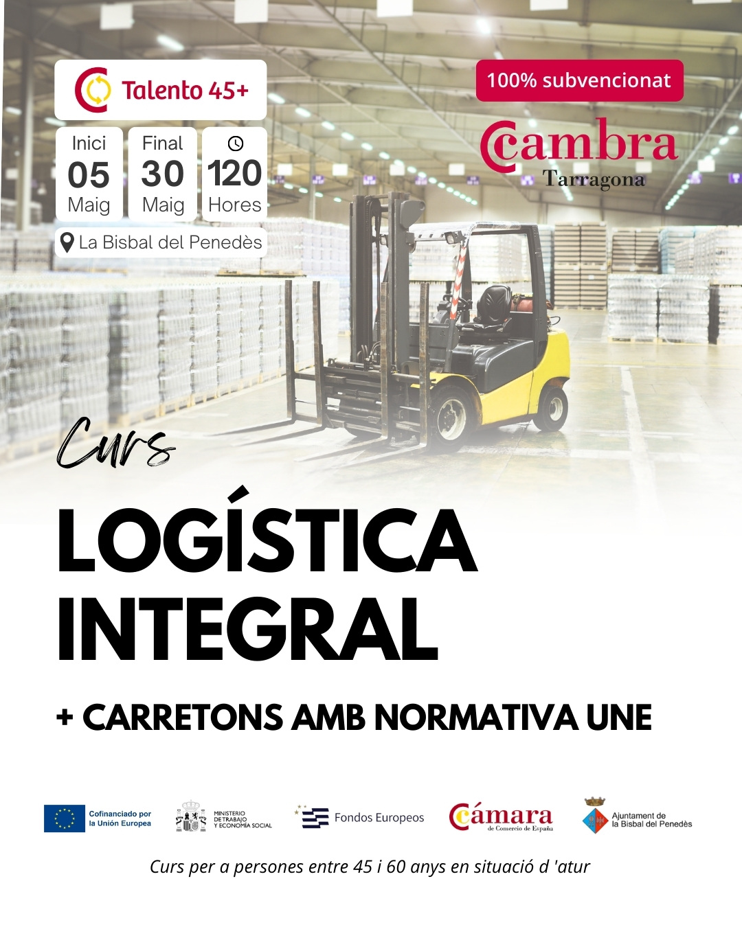 ÚLTIMES PLACES –> Formació gratuïta de logística integral + carretoners amb normativa UNE per a persones en situació d’atur d’entre 45 i 60 anys