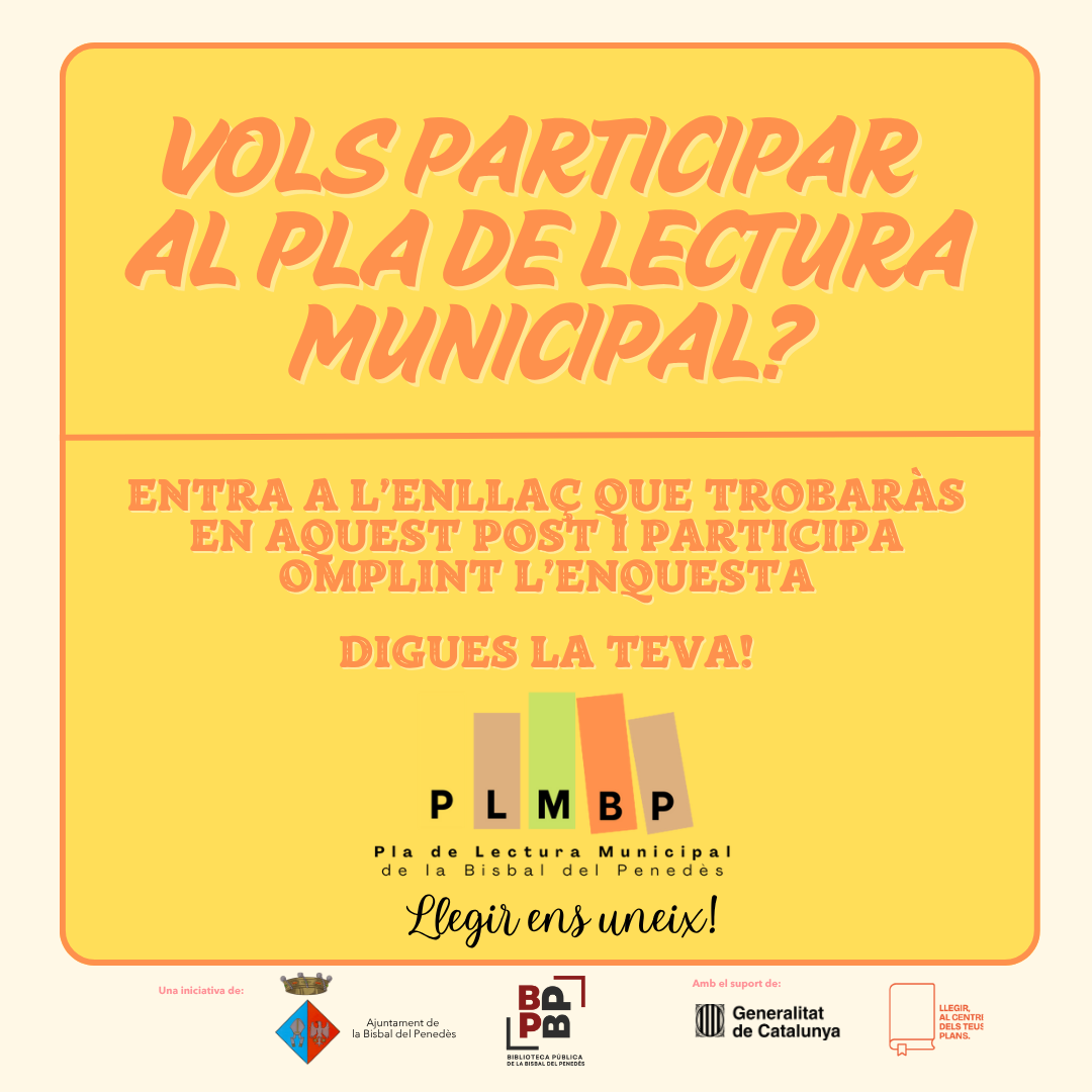 Omple l’enquesta que trobaràs en aquest enllaç i participa en el Pla de Lectura Municipal de la Bisbal del Penedès: