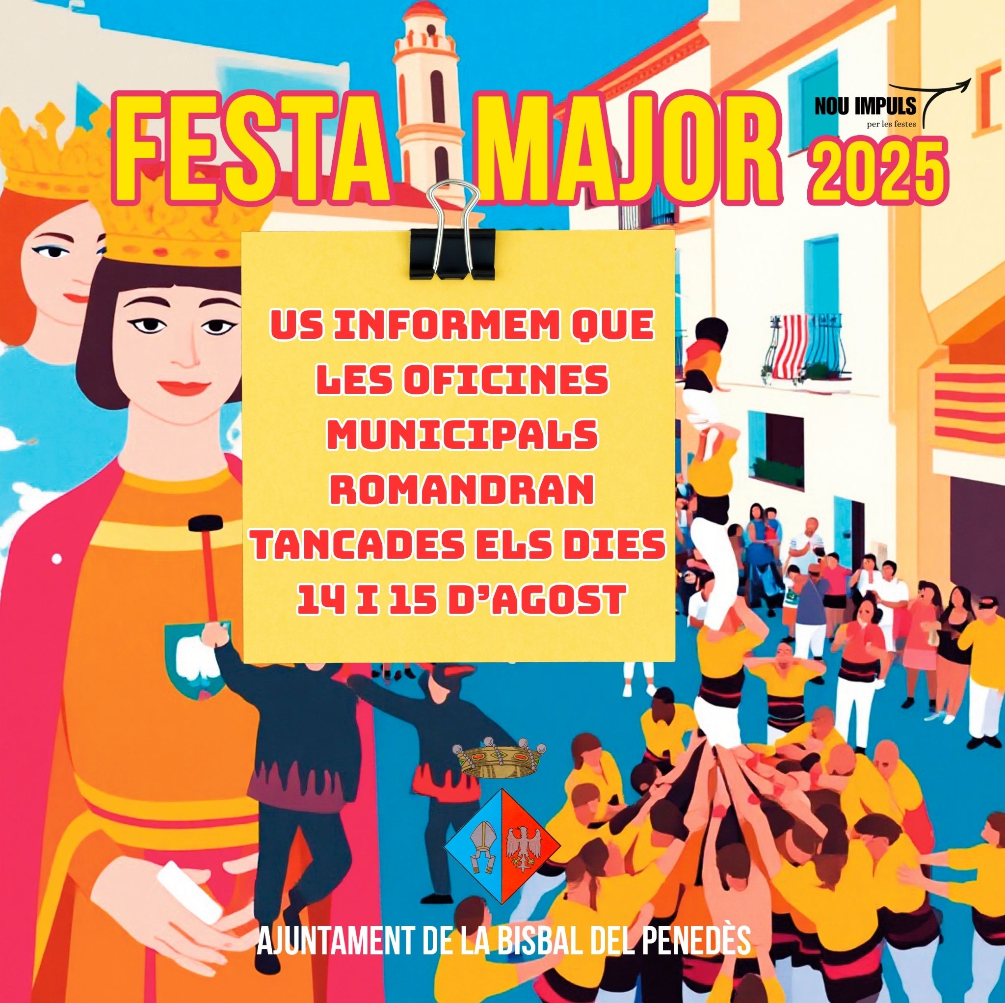 Avui dijous 14 d’agost i demà divendres 15 d’agost les oficines municipals romandran tancades. Bona Festa Major!