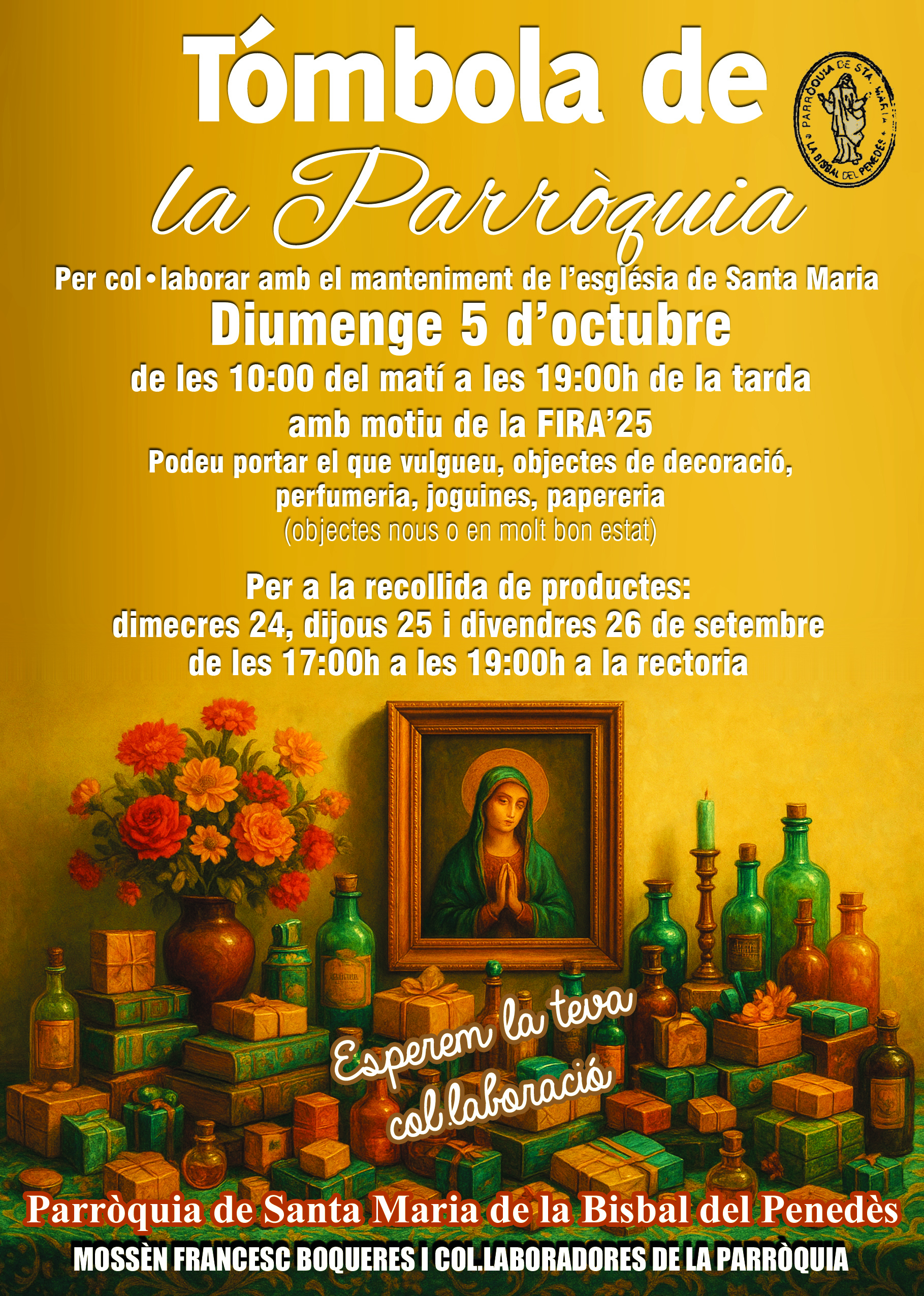 Avui dimecres, demà dijous i el divendres podeu portar objectes per a la tómbola de la Fira que organitza la Parròquia