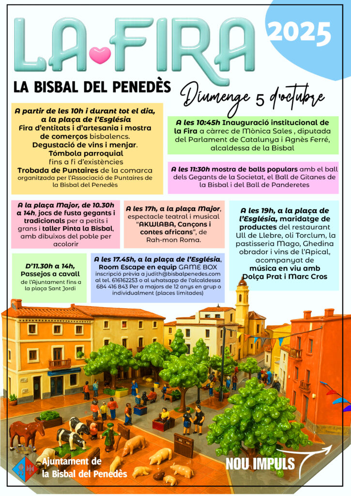 Como es tradicional, el primer domingo de octubre se celebra La Fira de la Bisbal del Penedès con numerosas actividades para todos los públicos. El evento llega a su 154ª edición este 2025 y, un año más, será una jornada festiva para la gente del pueblo pero también para todos aquellos visitantes que quieran pasar una jornada diferente en la Bisbal del Penedès.