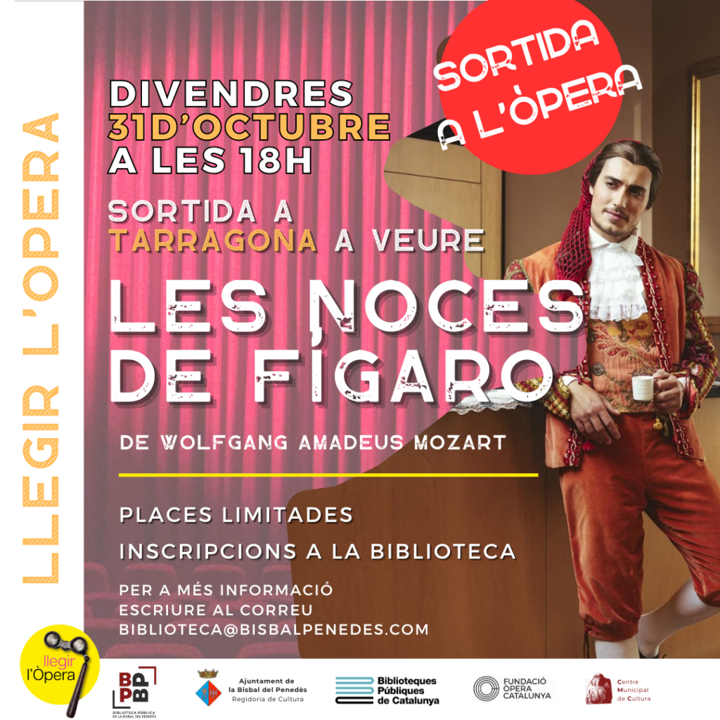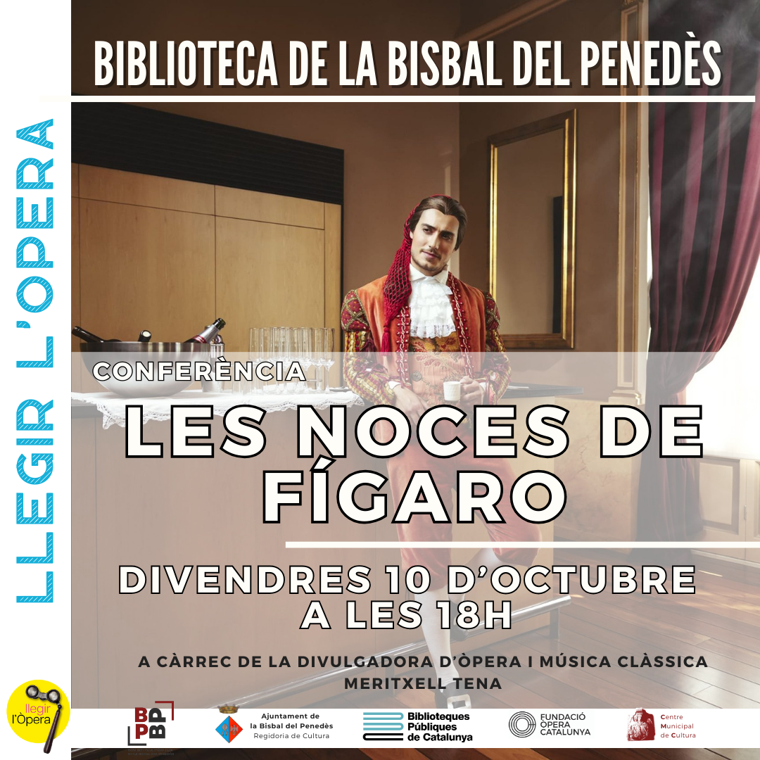 El pròxim divendres 10 d’octubre, a les 18h, la biblioteca pública de la Bisbal del Penedès acollirà la conferència “Les noces de Fígaro” a càrrec de la divulgadora d’òpera i música clàssica Meritxell Tena.