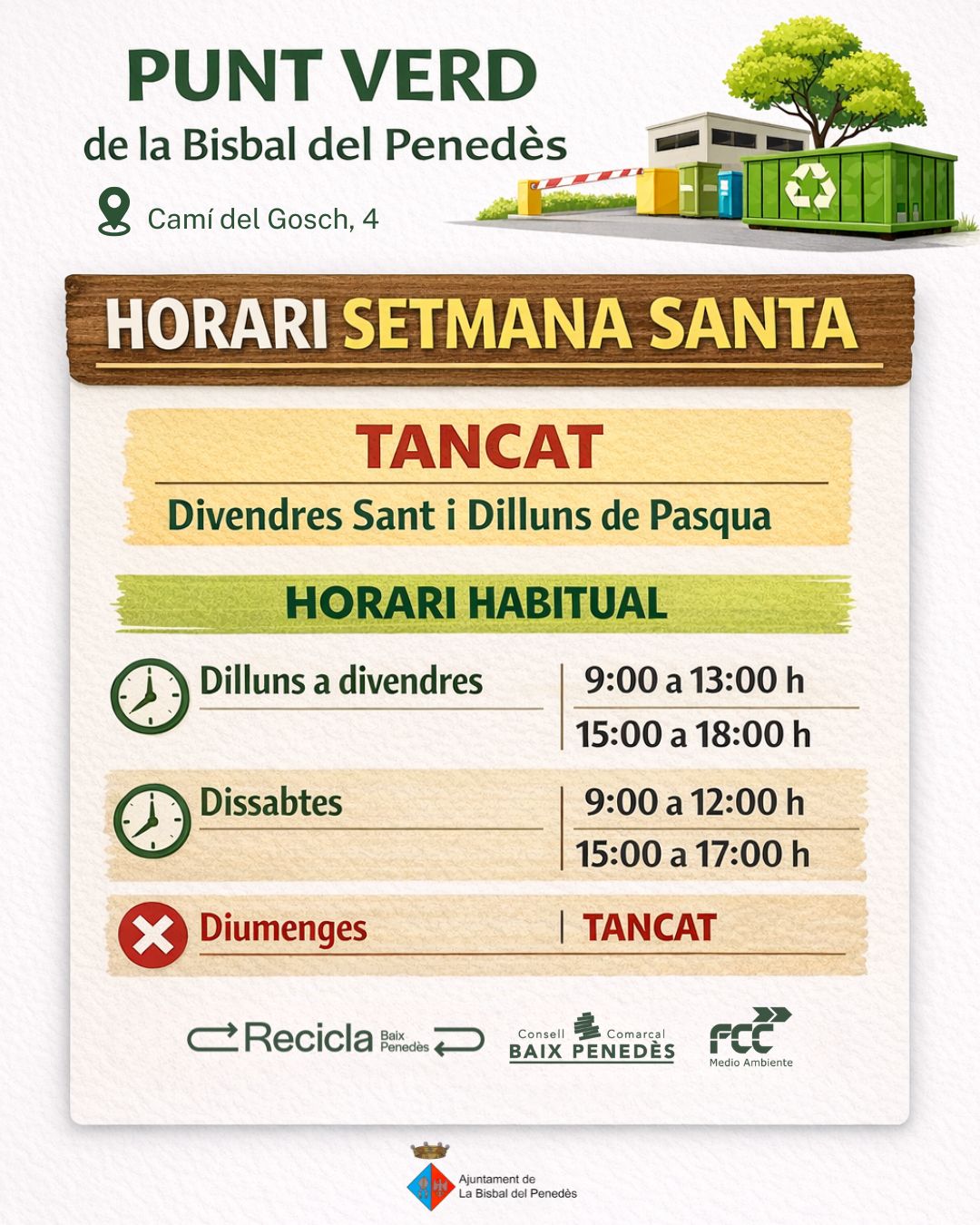 La Junta de govern del passat 3 de novembre va aprovar, a petició de la Regidoria de Via Pública, la contractació del subministrament i instal·lació d’un equipament de joc infantil homologat, destinat específicament a infants de 0 a 4 anys, per crear un parc a l’avinguda Baix Penedès, 12, just al costat del Rebost Solidari. La contractació inclou la instal·lació de la tanca perimetral de seguretat, laporta d’accés, la retolació homologada i la corresponent execució dels treballs d’instal·lació i ancoratge segons normativa vigent en matèria de seguretat en àrees de joc infantil.