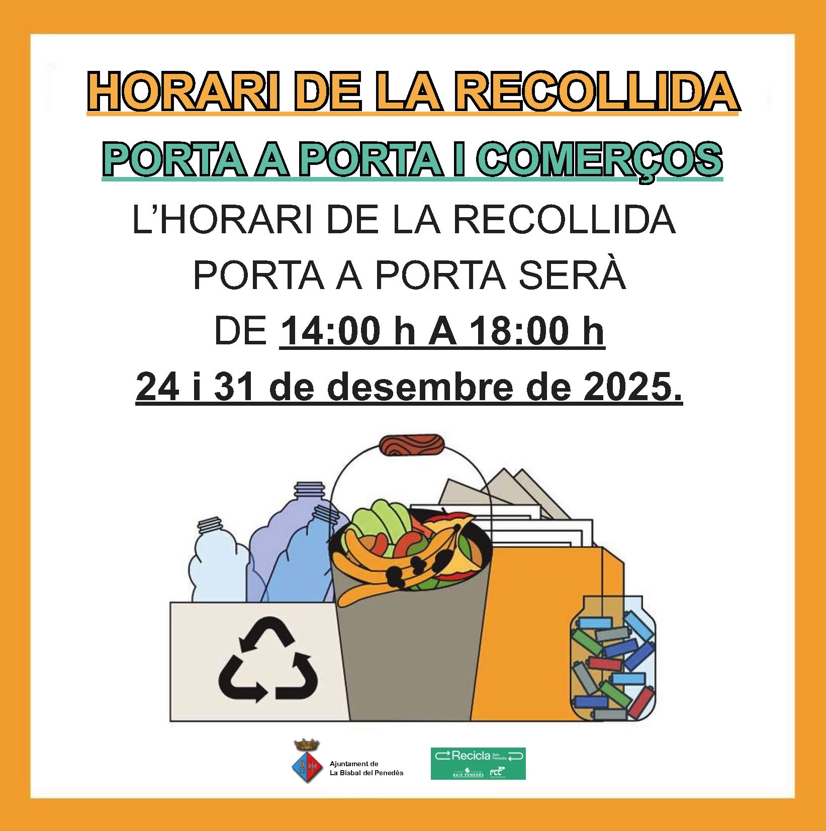 Horari especial del porta a porta els dies 24 i 31 de desembre