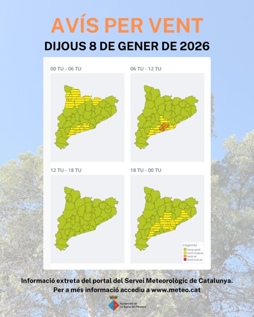 El Servei Meteorològic de Catalunya ha emès un avís per vent per avui dijous. Extremeu les precaucions.