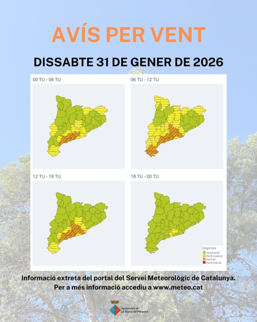 El Servei Meteorològic de Catalunya ha publicat un avís per vent per demà dissabte 31 de gener.