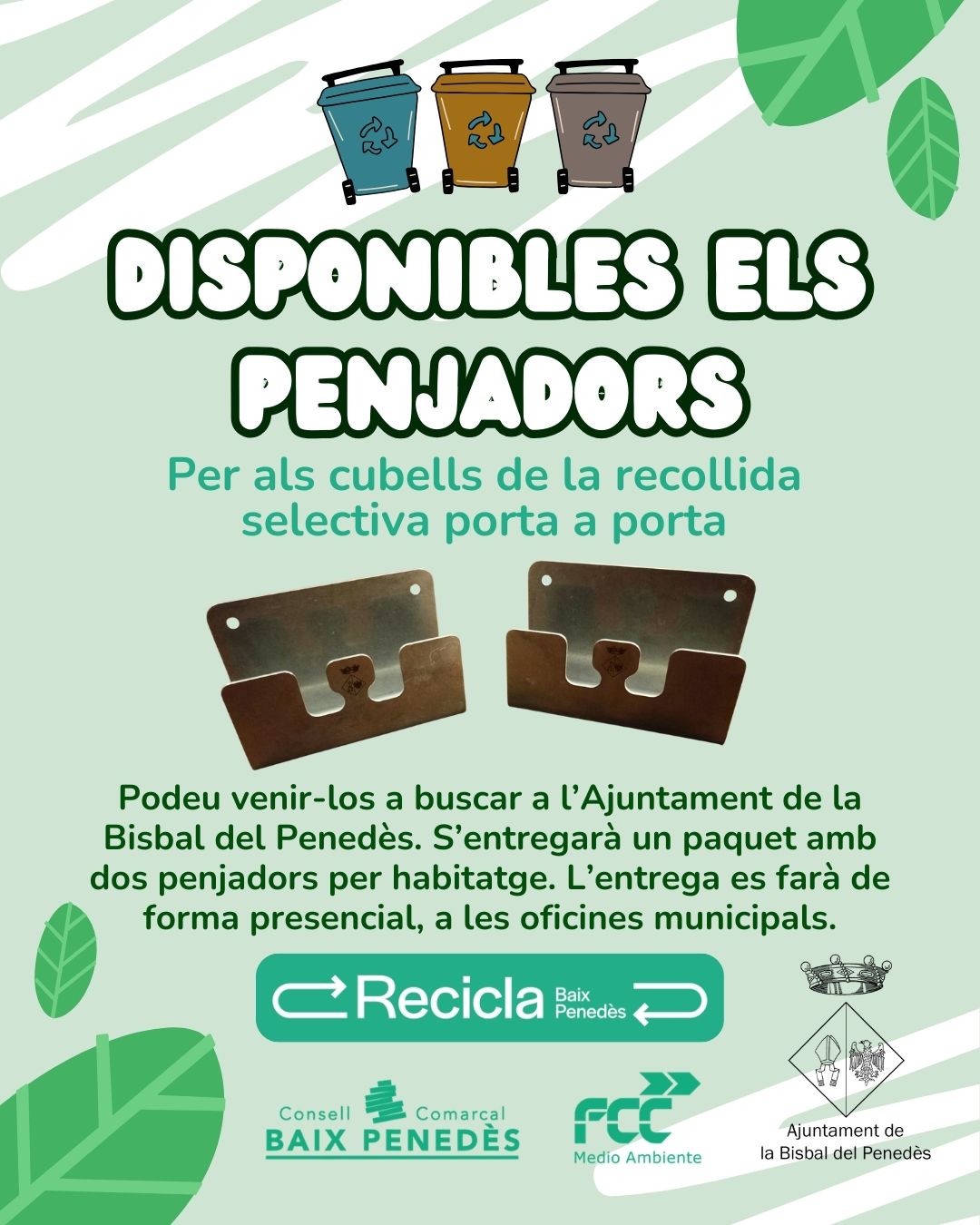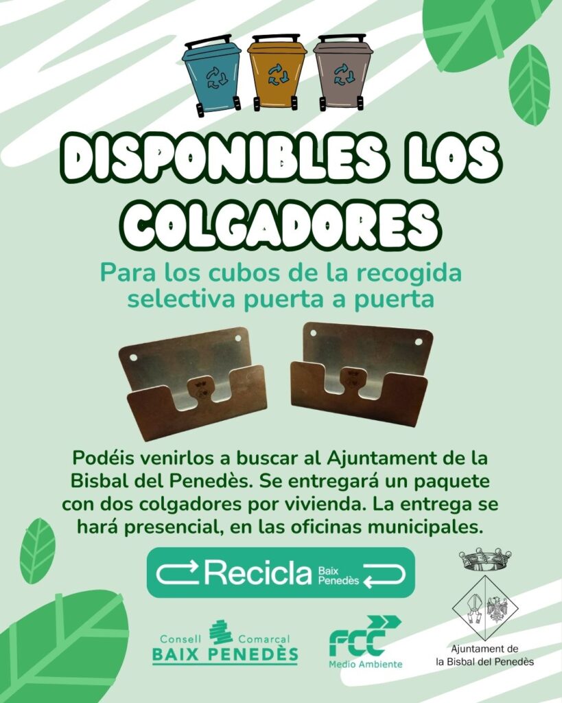 A partir de demà dijous 19 de febrer podreu recollir els penjadors per als cubells de la recollida porta a porta a l’Ajuntament