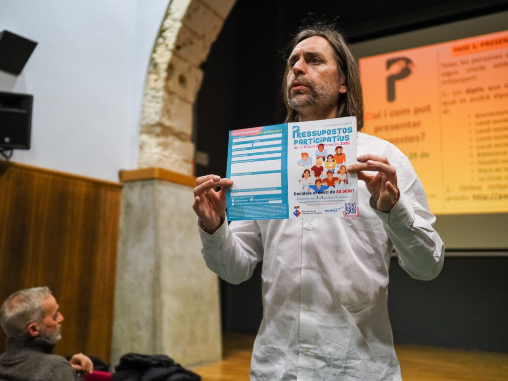 Este martes 3 de marzo, a las 19 h, el Centre Municipal de Cultura de la Bisbal del Penedès ha acogido la presentación de los Presupuestos Participativos 2026 de la Bisbal del Penedès. Durante el acto se ha explicado el funcionamiento de la edición de este año y las diferentes fases del proceso participativo. La sesión también ha incluido una dinámica abierta para que las personas asistentes comenzaran a generar propuestas de manera colectiva, así como un pequeño pica pica final.