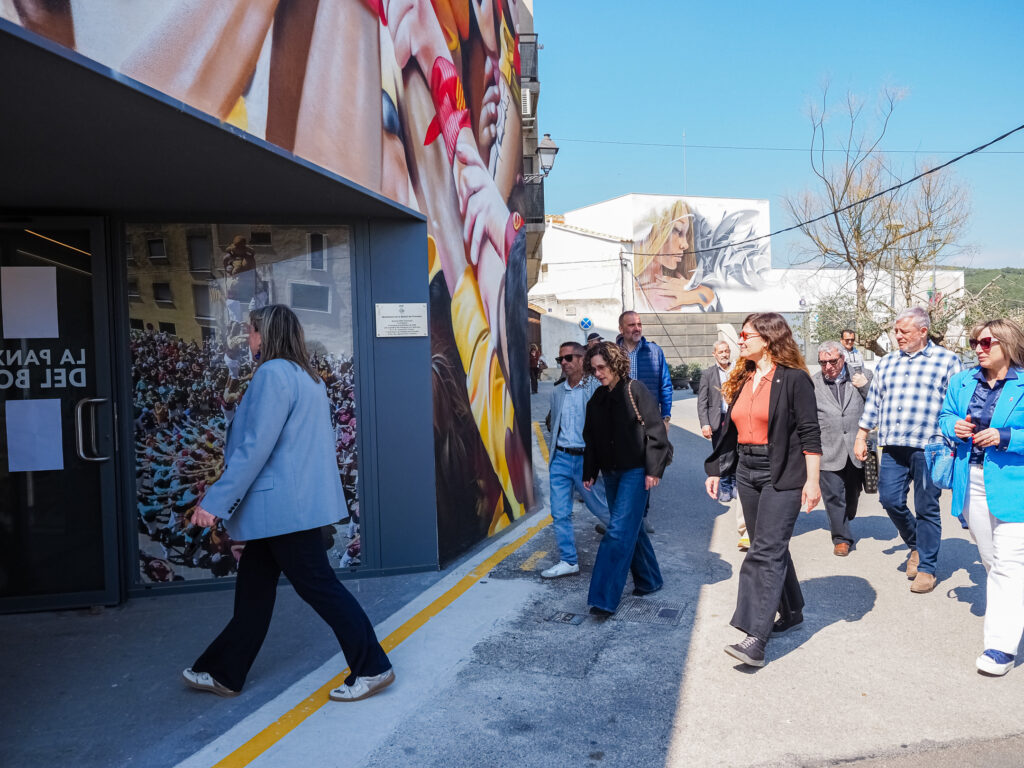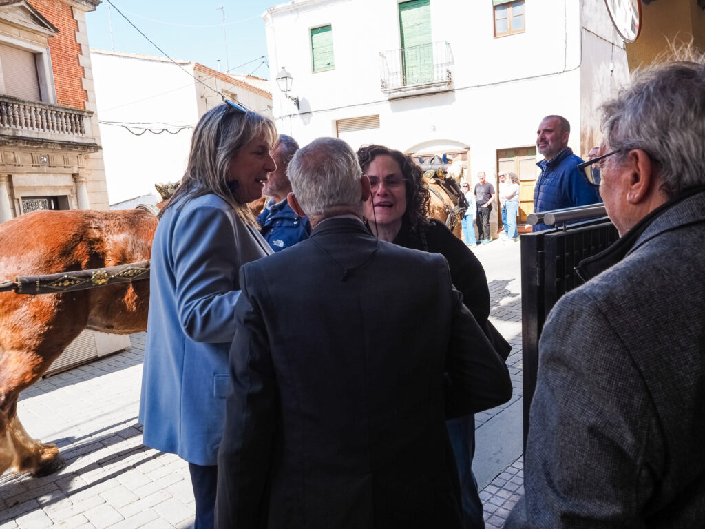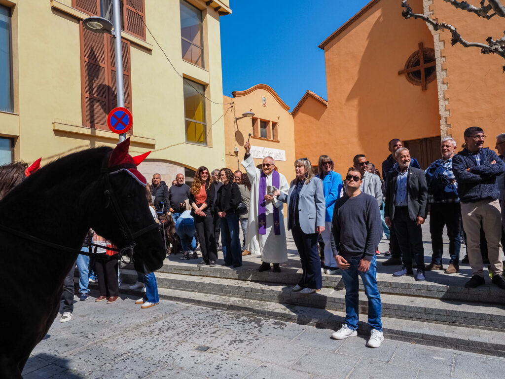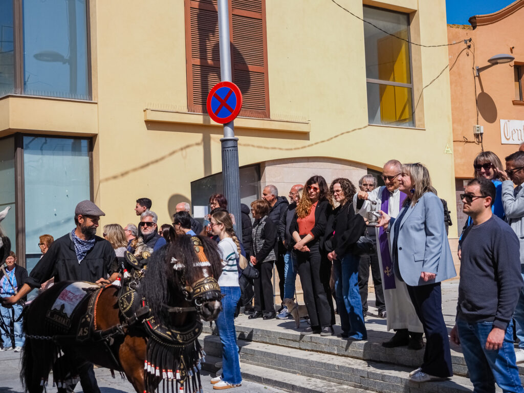 Durante su estancia, la consellera asistió al acto de bendición de los participantes, uno de los momentos más emblemáticos de la fiesta. En el marco de la visita, también recibió varios obsequios institucionales: un libro de Benjamí Català y una guía de caminos del bisbalense Robert Vallés.