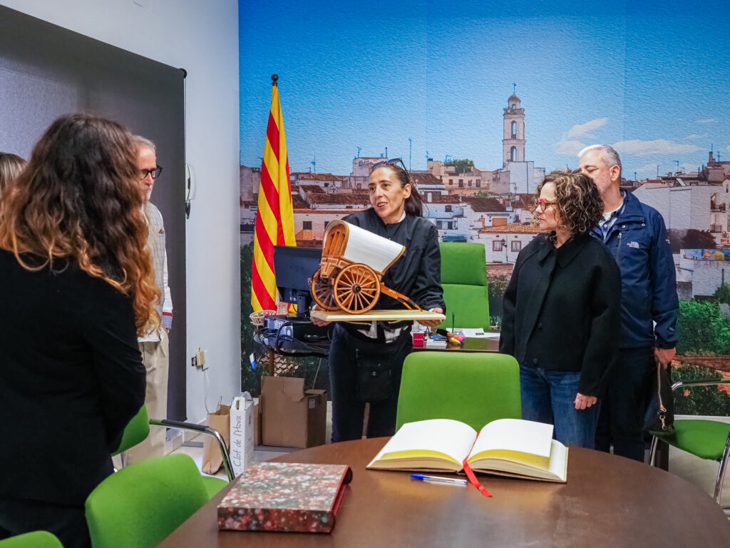 Por su parte, la presidenta de la Coordinadora dels Tres Tombs, Tania Guasch, le hizo entrega de una réplica de un carro típico de la fiesta, como muestra representativa de esta tradición arraigada en el territorio.