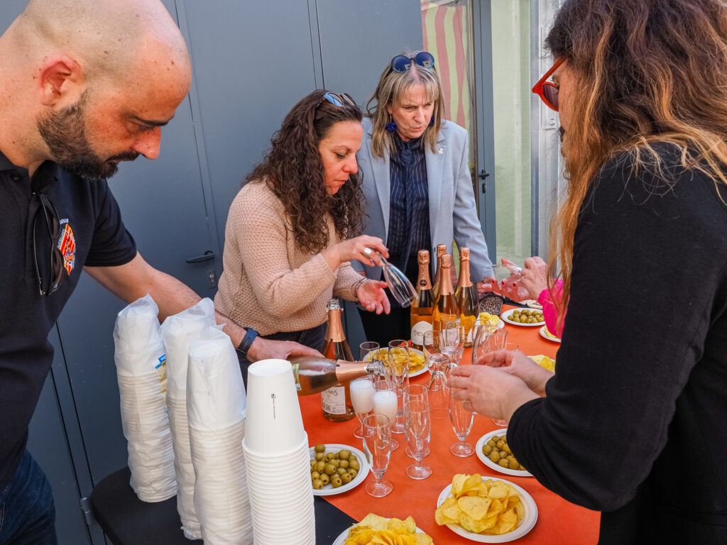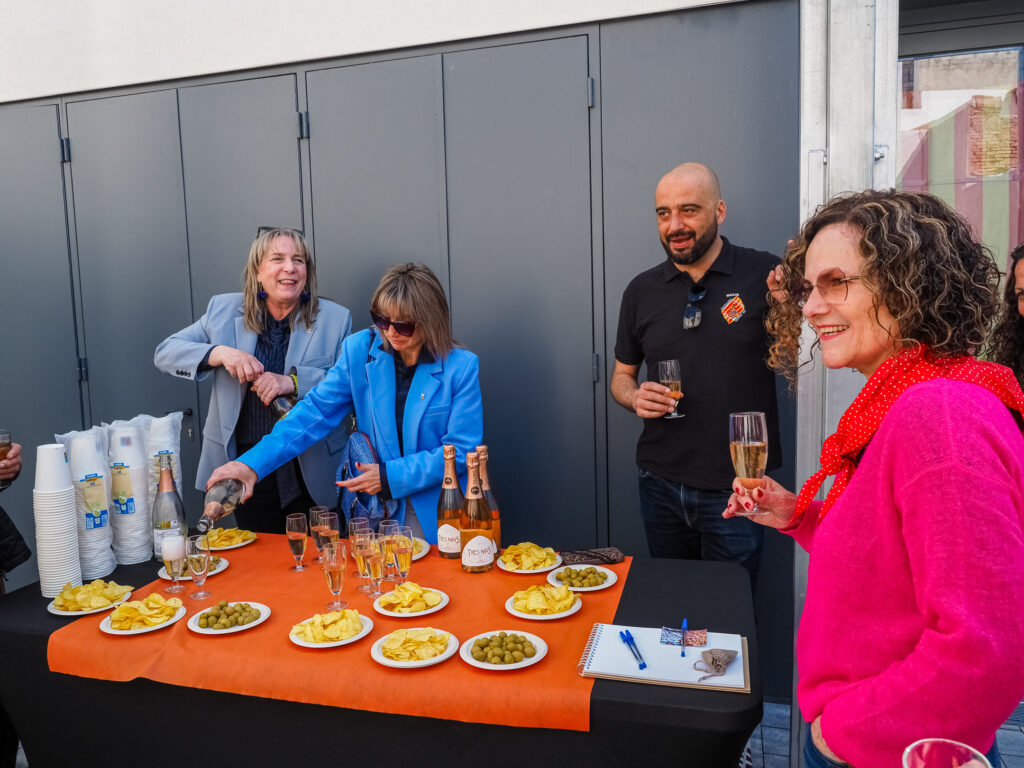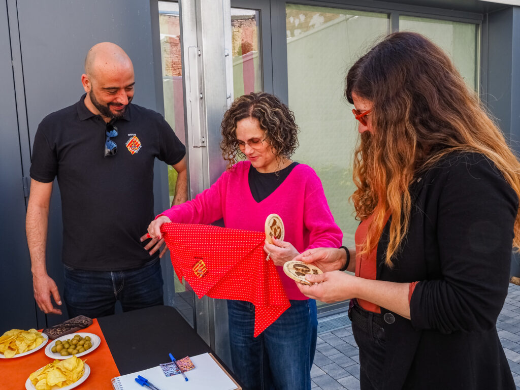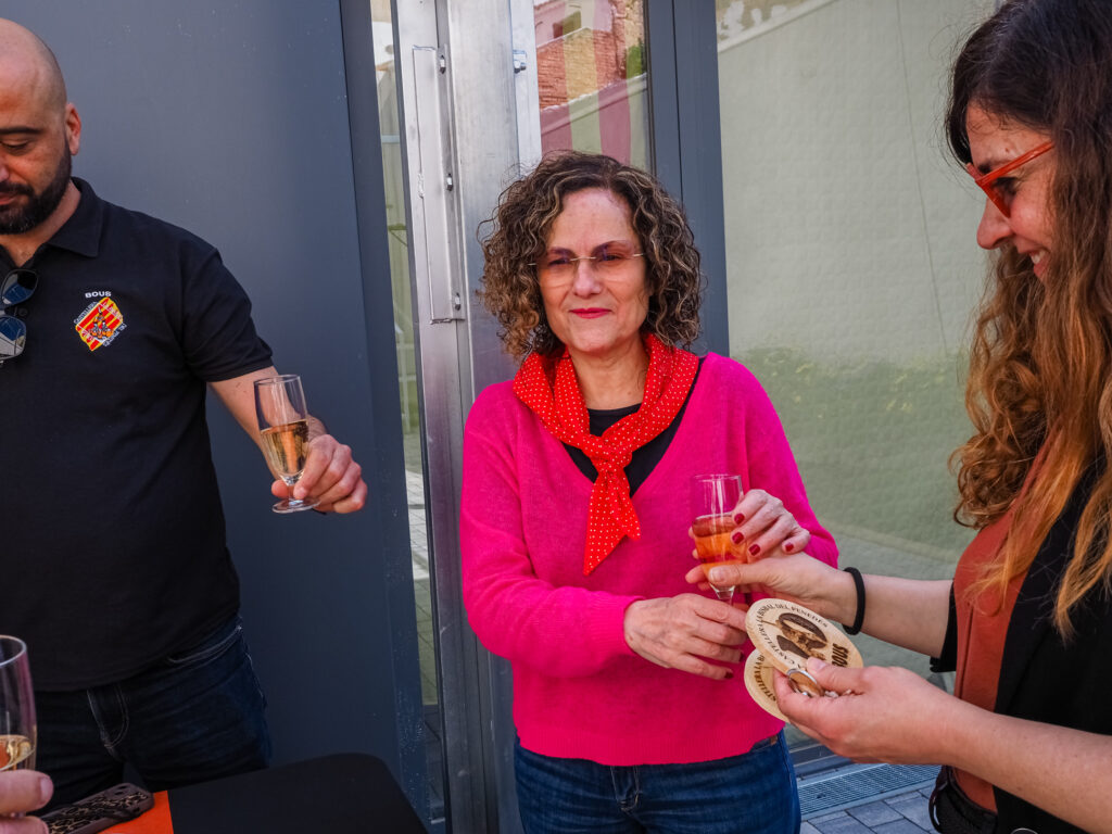 La jornada continuó con una visita a la colla castellera local, els Bous, que mostraron a la consellera su local, la Fassina. Durante el encuentro, la colla también le ofreció algunos obsequios representativos y una copa de cava.