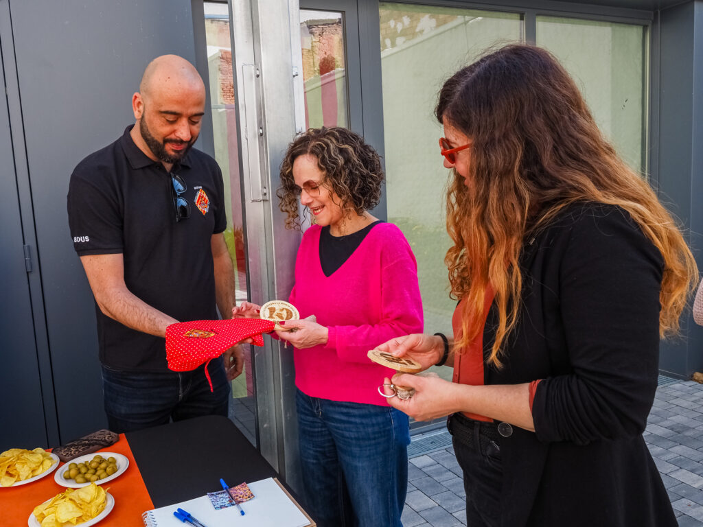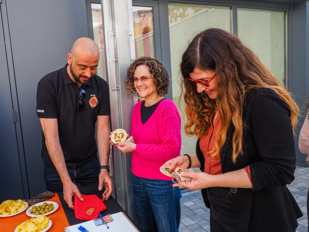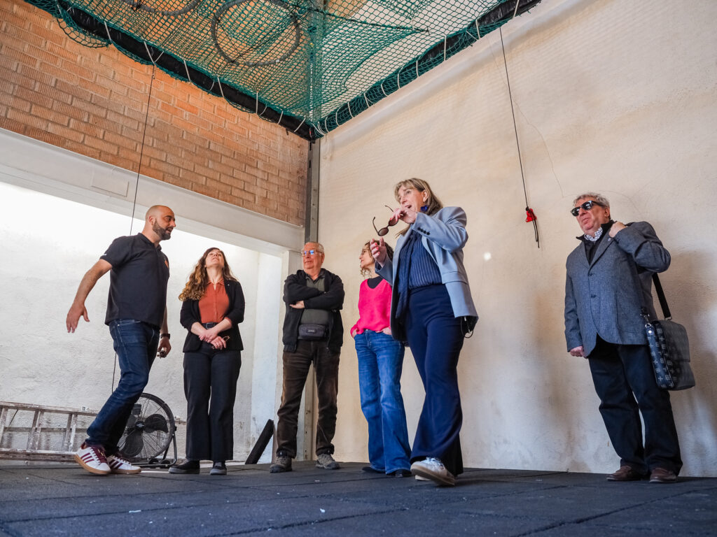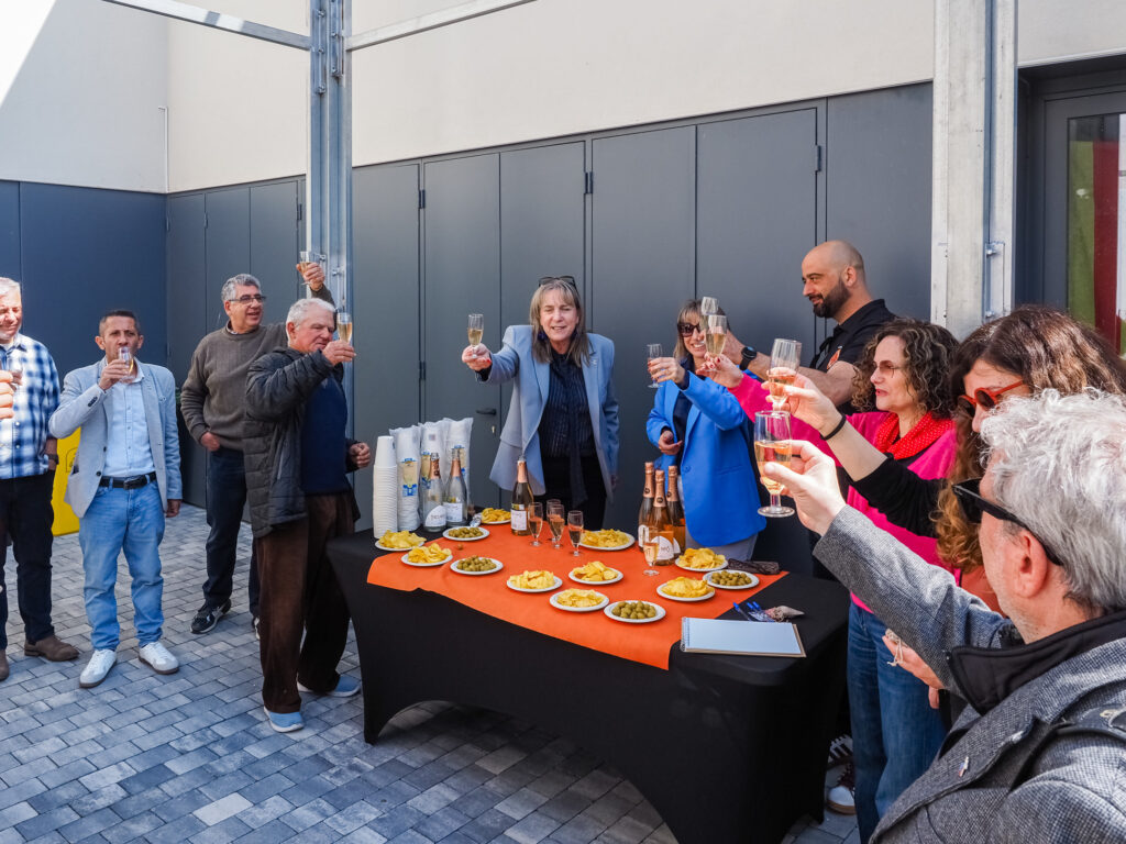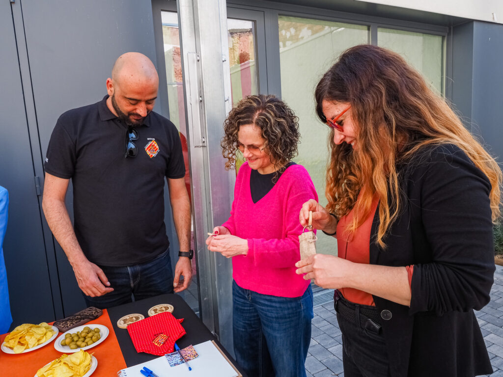 La jornada continuó con una visita a la colla castellera local, els Bous, que mostraron a la consellera su local, la Fassina. Durante el encuentro, la colla también le ofreció algunos obsequios representativos y una copa de cava.